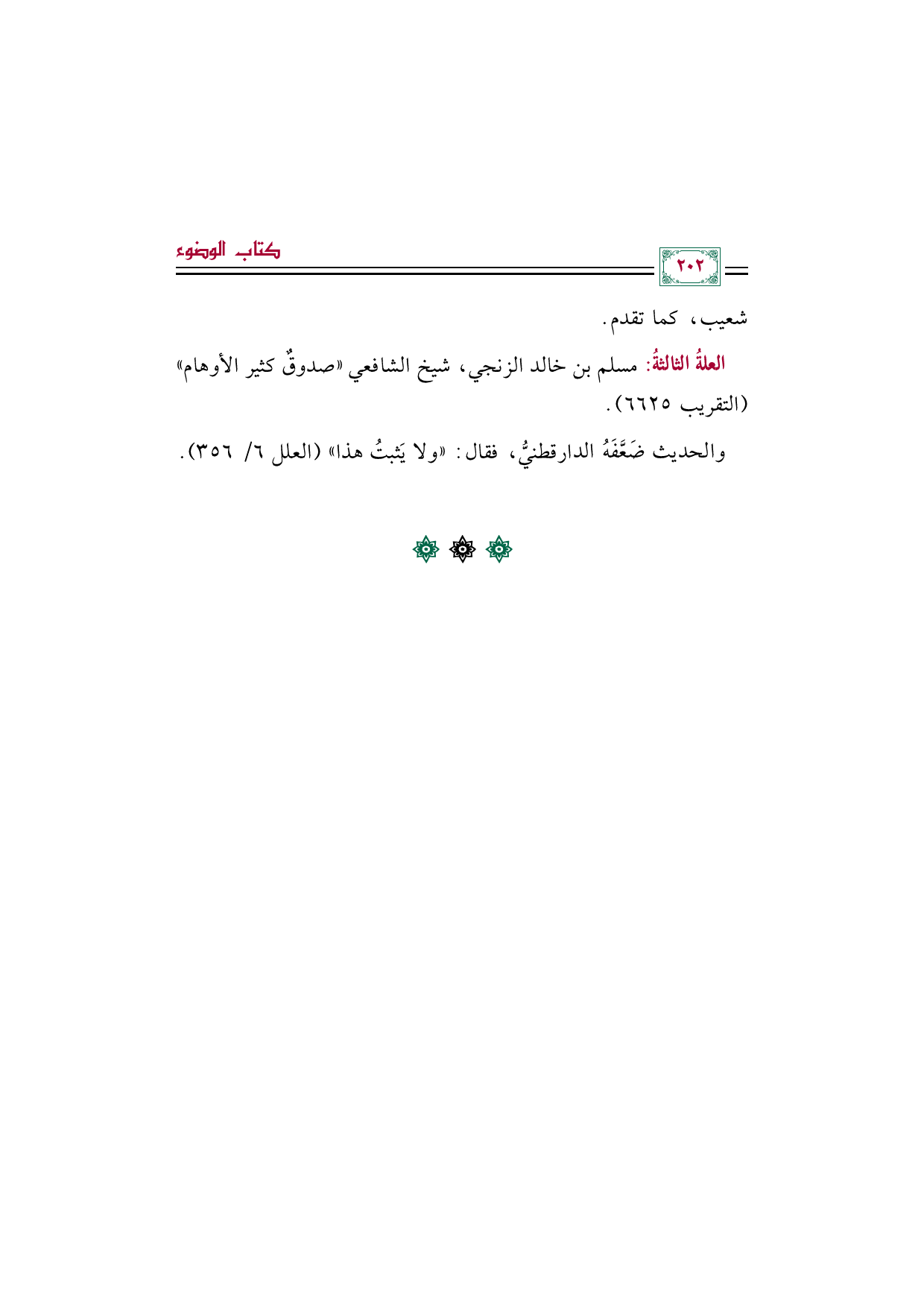 العلةُ الثالثةُ: مسلم بن خالد الزنجي، شيخ الشافعي ((صدوقٌ كثير الأوهام)) (التقريب ٦٦٢٥).