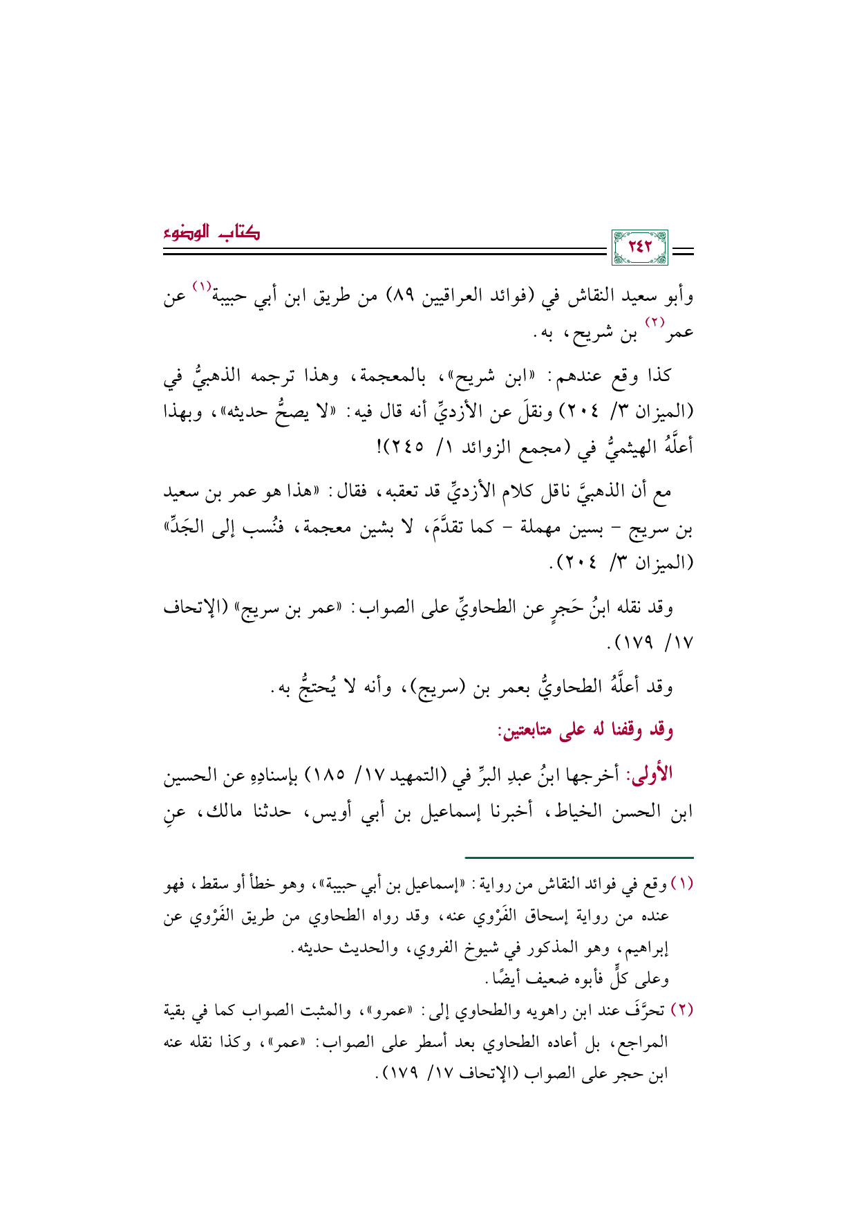 وقد أعلَّهُ الطحاويُّ بعمر بن (سريج)، وأنه لا يُحتجُّ به.