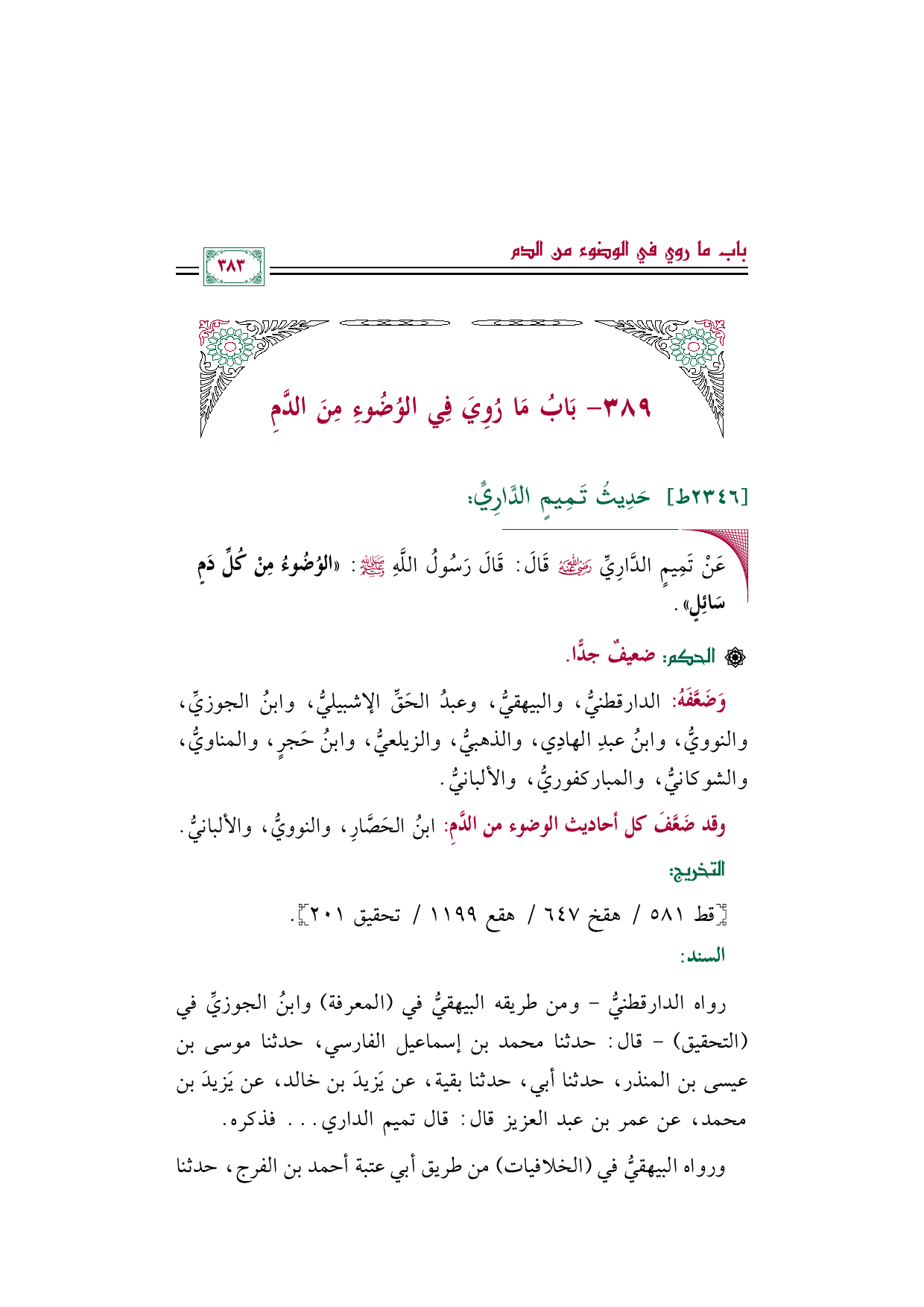 [التخريج]: [قط ٥٨١/ هقخ ٦٤٧/ هقع ١١٩٩/ تحقيق ٢٠١].