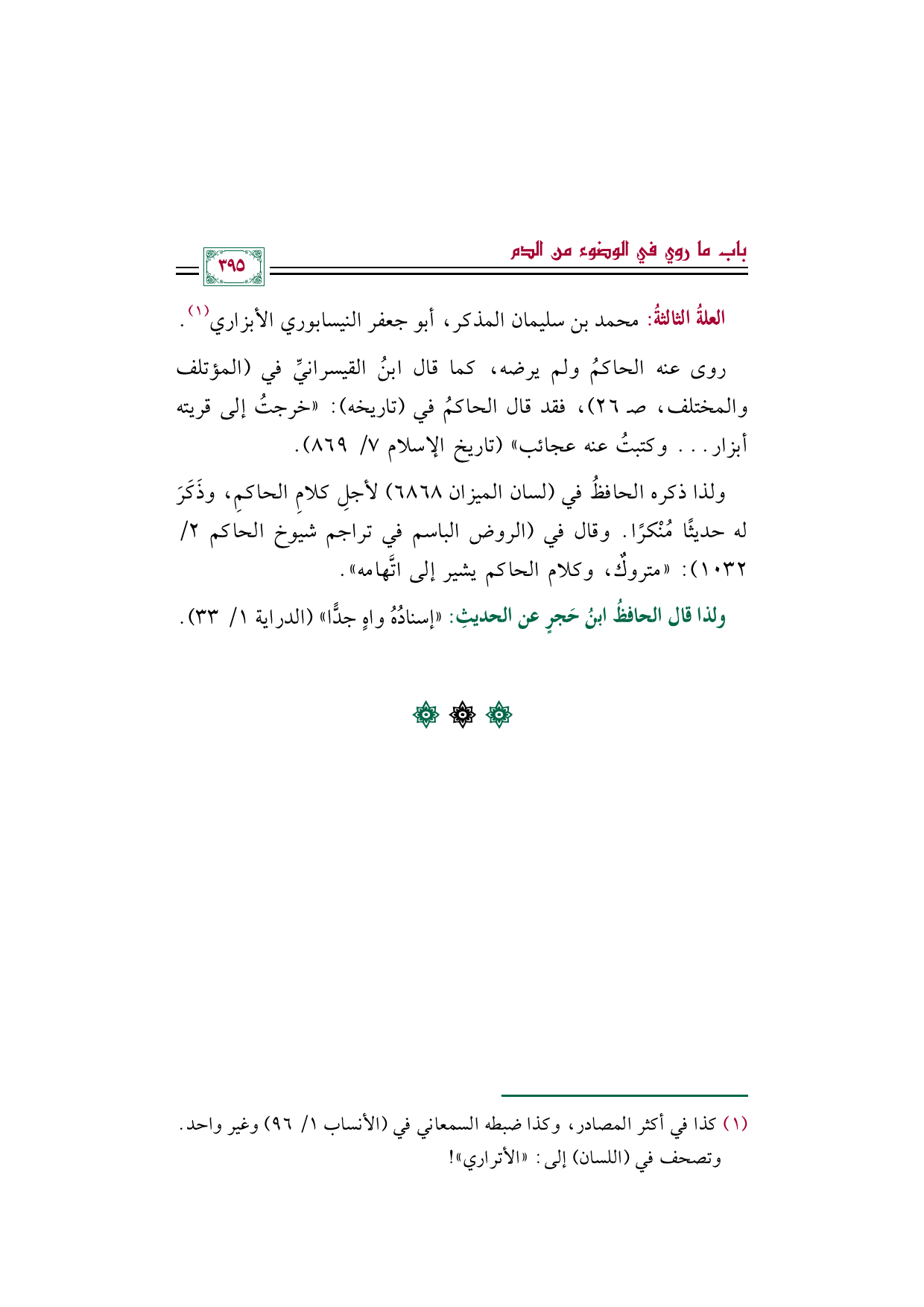 العلةُ الثالثةُ: محمد بن سليمان المذكر، أبو جعفر النيسابوري الأبزاري (¬١).