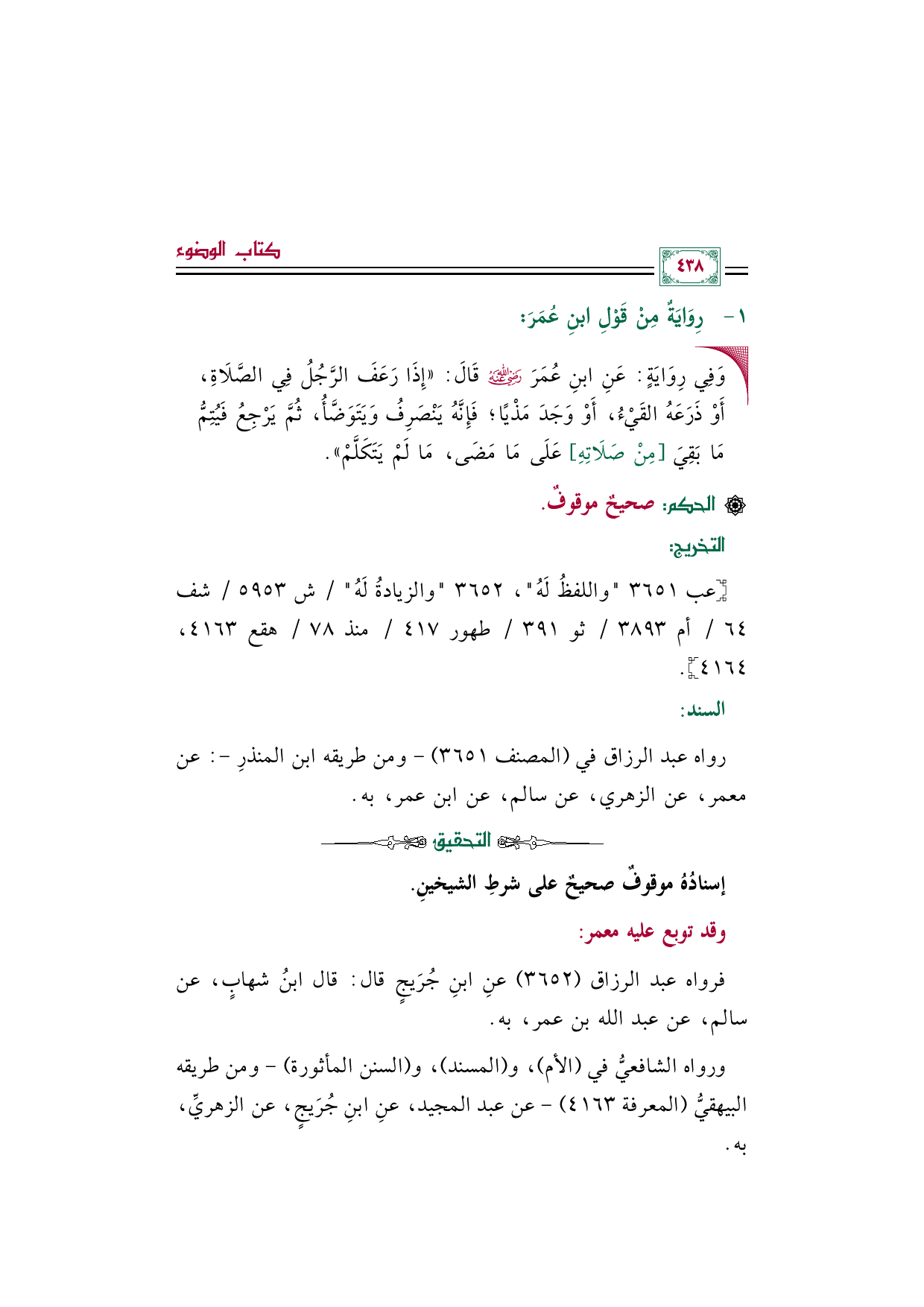 فرواه عبد الرزاق (٣٦٥٢) عنِ ابنِ جُرَيجٍ قال: قال ابنُ شهابٍ، عن سالم، عن عبد الله بن عمر، به.