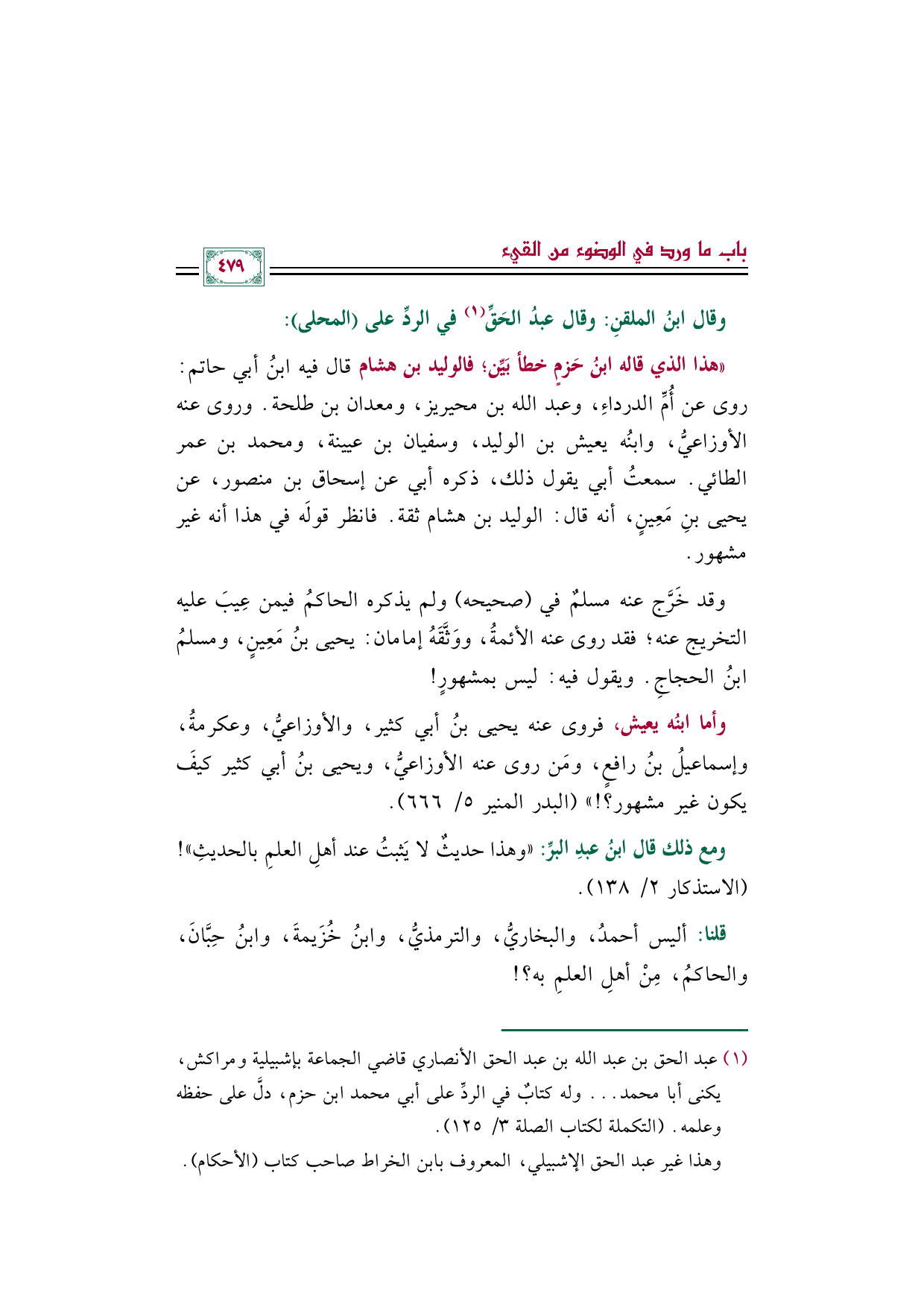 وقال ابنُ الملقنِ: وقال عبدُ الحَقِّ (¬١) في الردِّ على (المحلى):
