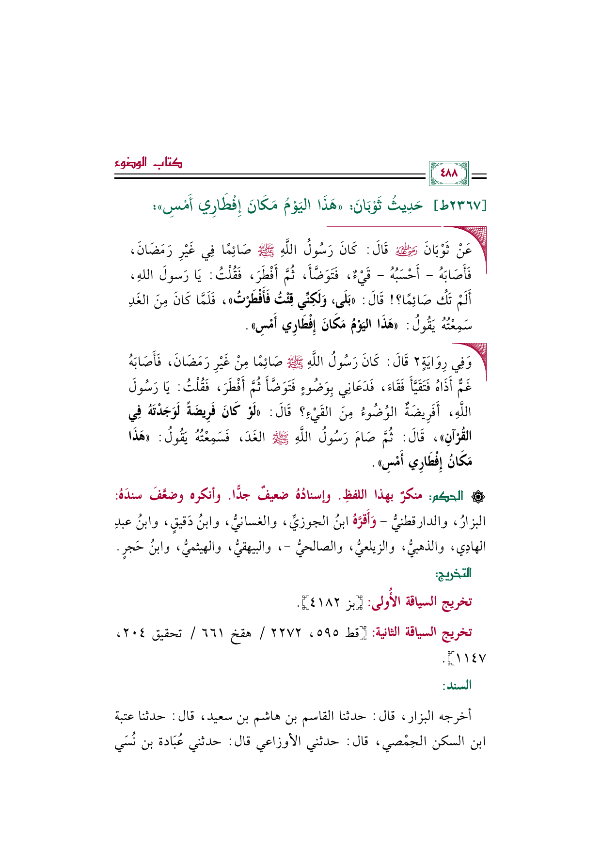 ٢٣٦٧ - حَدِيثُ ثَوْبَانَ: ((هَذَا اليَوْمُ مَكَانَ إِفْطَارِي أَمْسِ)):