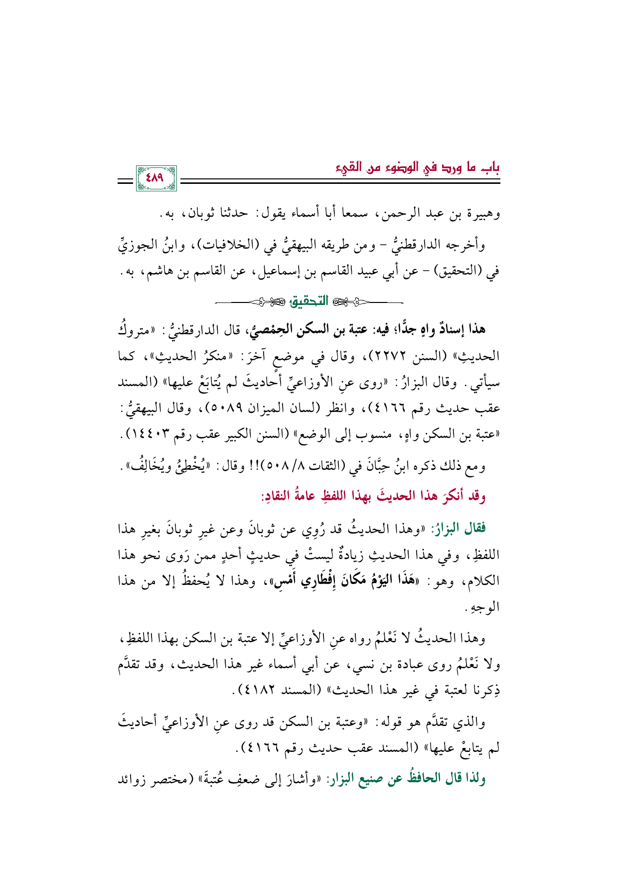 ولذا قال الحافظُ عن صنيع البزار: "وأشارَ إلى ضعفِ عُتبةَ" (مختصر زوائد