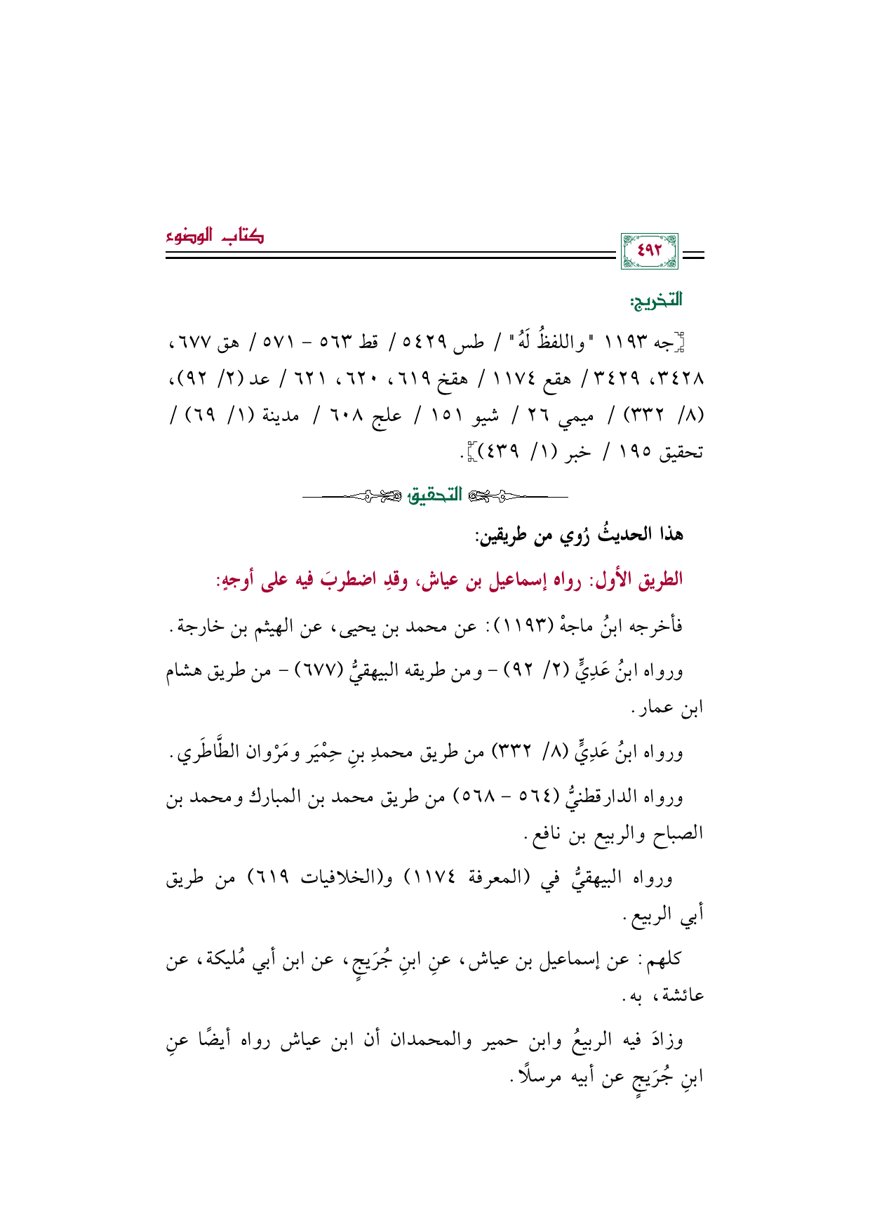 ورواه الدارقطنيُّ (٥٦٤ - ٥٦٨) من طريق محمد بن المبارك ومحمد بن الصباح والربيع بن نافع.