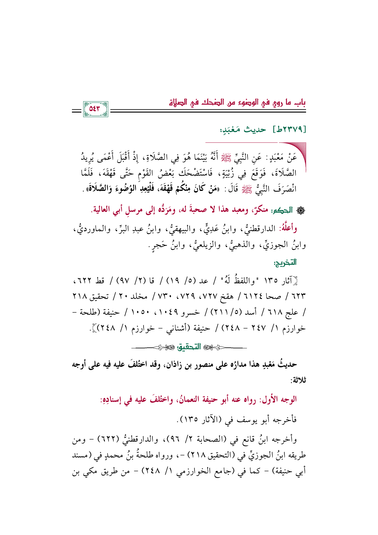 حديثُ مَعْبدٍ هذا مدارُه على منصور بن زاذان، وقد اختُلفَ عليه فيه على أوجه ثلاثة: