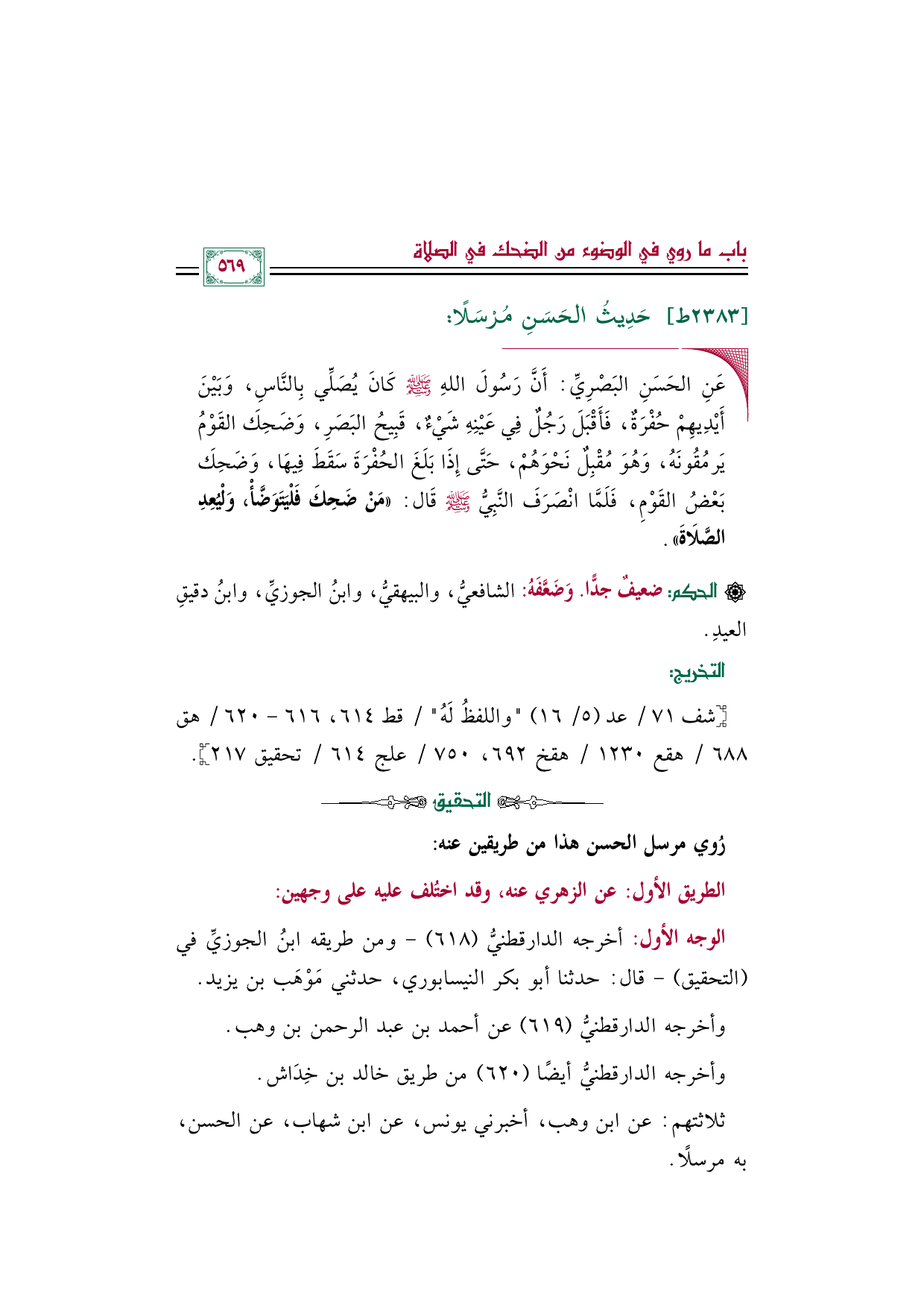 وأخرجه الدارقطنيُّ (٦١٩) عن أحمد بن عبد الرحمن بن وهب.