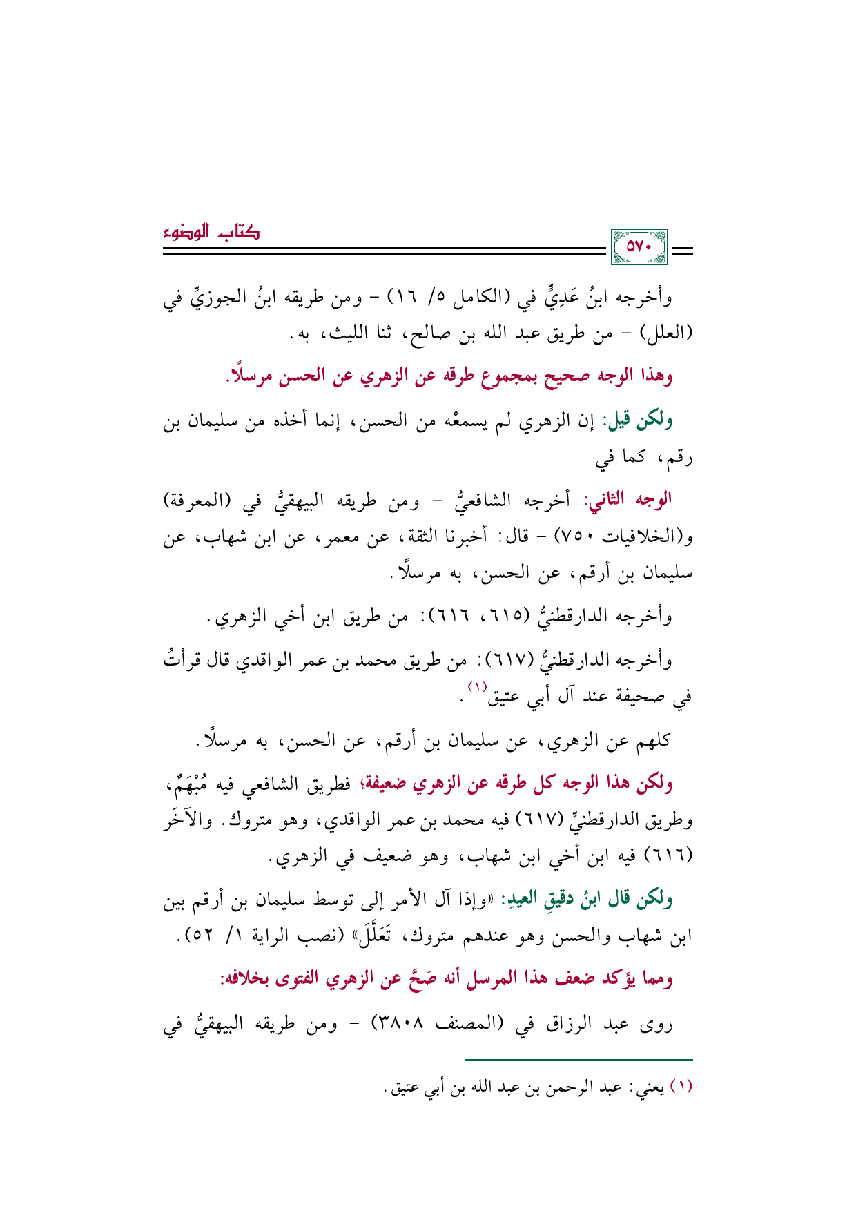 وأخرجه الدارقطنيُّ (٦١٧): من طريق محمد بن عمر الواقدي قال قرأتُ في صحيفة عند آل أبي عتيق (¬١).