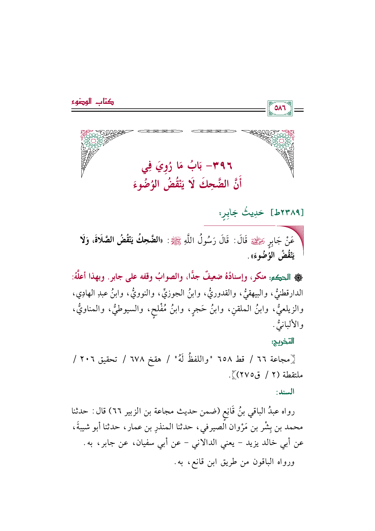 رواه عبدُ الباقي بنُ قَانِعٍ (ضمن حديث مجاعة بن الزبير ٦٦) قال: حدثنا محمد بن بِشْر بن مَرْوان الصيرفي، حدثنا المنذرِ بن عمار، حدثنا أبو شيبةَ، عن أبي خالد يزيد - يعني الدالاني - عن أبي سفيان، عن جابر، به.