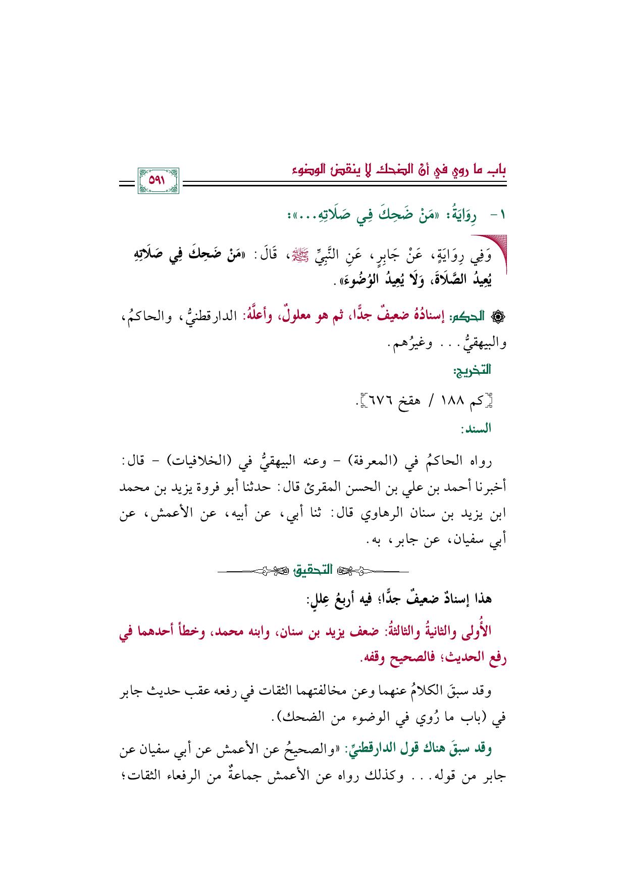 رِوَايَةُ ((مَنْ ضَحِكَ فِي صَلَاتِهِ ... )):