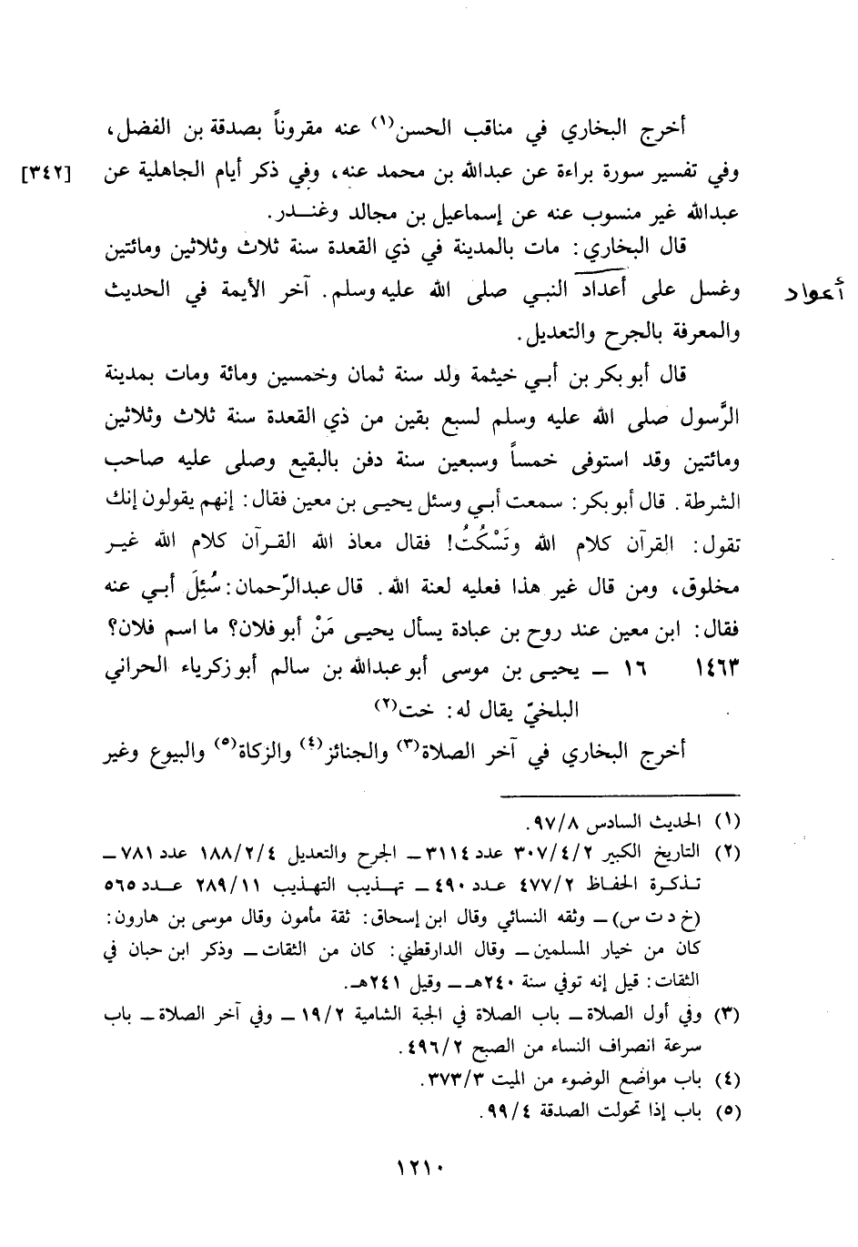 1463 - يحيى بن مُوسَى أَبُو عبد الله بن سَالم أَبُو زَكَرِيَّا الْحَرَّانِي الْبَلْخِي يُقَال لَهُ خت أخرج البُخَارِيّ فِي آخر الصَّلَاة والجنائز وَالزَّكَاة والبيوع وَغير مَوضِع عَنهُ عَن وَكِيع والوليد بن مُسلم وَمُحَمّد بن بكر البرْسَانِي وسُويد بن هَارُون وَعبد الرَّزَّاق وَسَعِيد بن مَنْصُور مَاتَ لإحدى عشرَة لَيْلَة خلت من شهر رَمَضَان سنة تسع وَثَلَاثِينَ وَمِائَتَيْنِ قَالَ أَبُو زرْعَة هُوَ ثِقَة