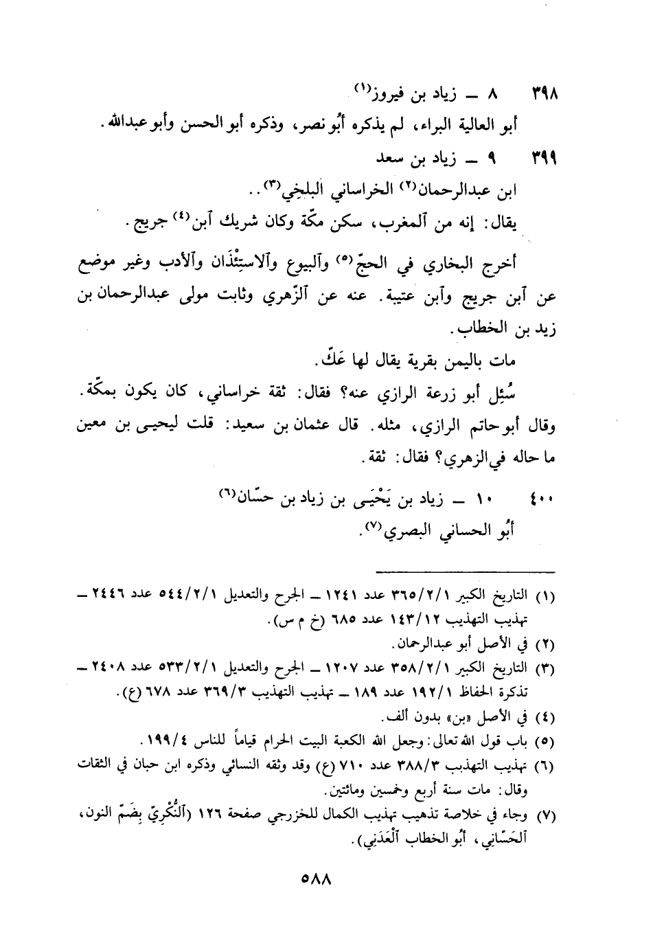 400 - زِيَاد بن يحيى بن زِيَاد بن حسان أَبُو الحساني الْبَصْرِيّ أخرج البُخَارِيّ فِي الشَّهَادَات عَنهُ عَن حَاتِم بن وردان قَالَ أَبُو حَاتِم الرَّازِيّ هُوَ ثِقَة