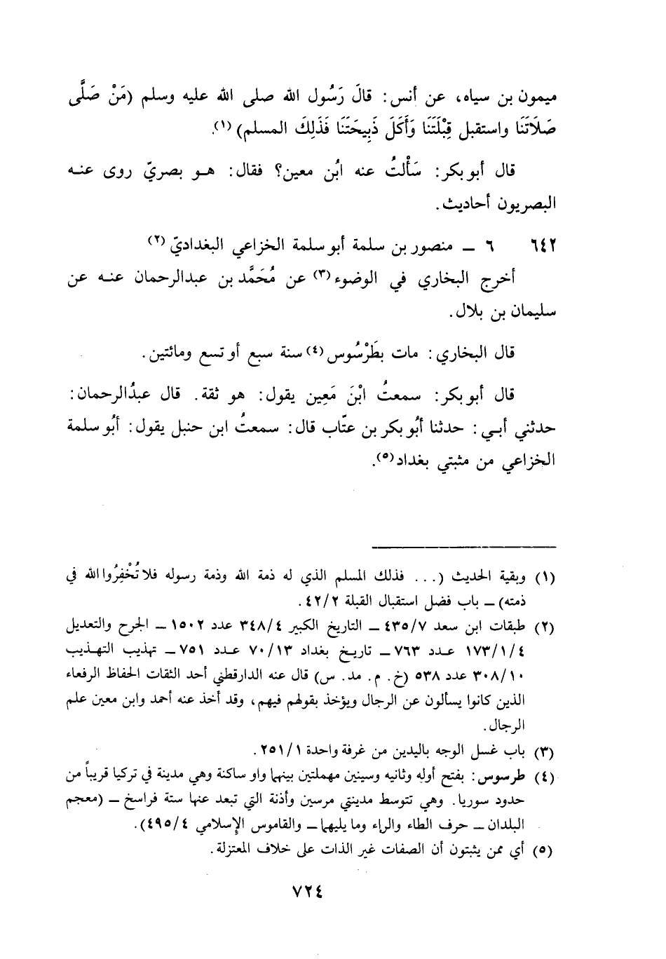 642 - مَنْصُور بن سَلمَة أَبُو سَلمَة الْخُزَاعِيّ الْبَغْدَادِيّ أخرج البُخَارِيّ فِي الْوضُوء عَن مُحَمَّد بن عبد الرَّحْمَن عَنهُ عَن سُلَيْمَان بن بِلَال قَالَ البُخَارِيّ مَاتَ بطرسوس سنة سبع أَو تسع وَمِائَتَيْنِ قَالَ أَبُو بكر سَمِعت بن معِين يَقُول هُوَ ثِقَة قَالَ عبد الرَّحْمَن حَدثنِي أبي حَدثنَا أَبُو بكر بن عتاب قَالَ سَمِعت بن حَنْبَل يَقُول أَبُو سَلمَة الْخُزَاعِيّ من مثبتي بَغْدَاد