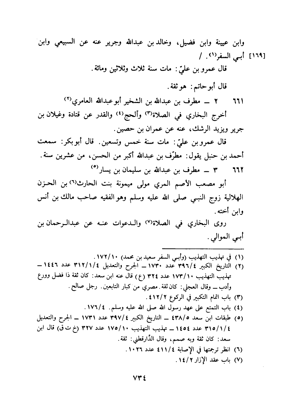 661 - مطرف بن عبد الله بن الشخير أَبُو عبد الله العامري أخرج البُخَارِيّ فِي الصَّلَاة وَالْحج وَالْقدر عَن قَتَادَة وغيلان بن جرير وَيزِيد الرشك عَنهُ عَن عمرَان بن حُصَيْن قَالَ عَمْرو بن عَليّ مَاتَ سنة خمس وَتِسْعين قَالَ أَبُو بكر سَمِعت أَحْمد بن حَنْبَل يَقُول مطرف بن عبد الله أكبر من الْحسن من عشْرين سنة