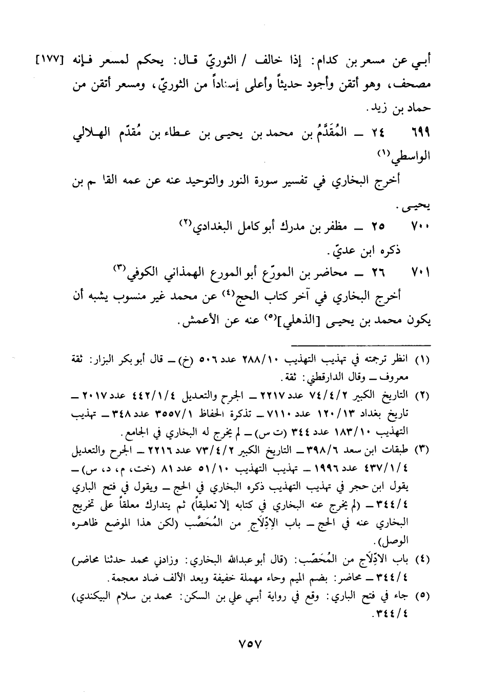 699 - الْمُقدم بن مُحَمَّد بن يحيى بن عَطاء بن مقدم الْهِلَالِي الوَاسِطِيّ أخرج البُخَارِيّ فِي تَفْسِير سُورَة النُّور والتوحيد عَنهُ عَن عَمه الْقَاسِم بن يحيى