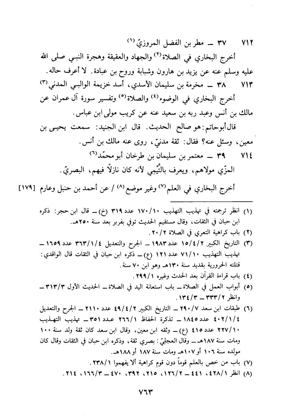 712 - مطر بن الْفضل الْمروزِي أخرج البُخَارِيّ فِي الصَّلَاة وَالْجهَاد والعقيقة وهجرة النَّبِي صلى الله عَلَيْهِ وَسلم عَنهُ عَن يزِيد بن هَارُون وشبابة وروح بن عبَادَة لَا أعرف حَاله