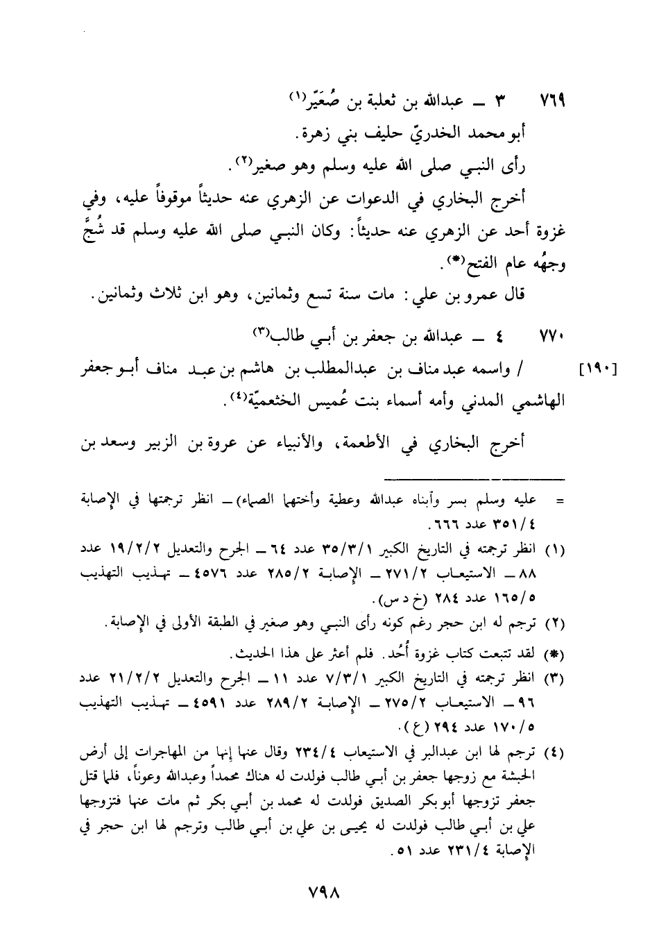 770 - عبد الله بن جَعْفَر بن أبي طَالب واسْمه عبد منَاف بن عبد الْمطلب بن هَاشم بن عبد منَاف أَبُو جَعْفَر الْهَاشِمِي الْمدنِي وَأمه أَسمَاء بنت عُمَيْس الخثعمية أخرج البُخَارِيّ فِي الْأَطْعِمَة والأنبياء عَن عُرْوَة بن الزبير وَسعد بن إِبْرَاهِيم عَنهُ عَن النَّبِي صلى الله عَلَيْهِ وَسلم وَعَن عَمه عَليّ بن أبي طَالب