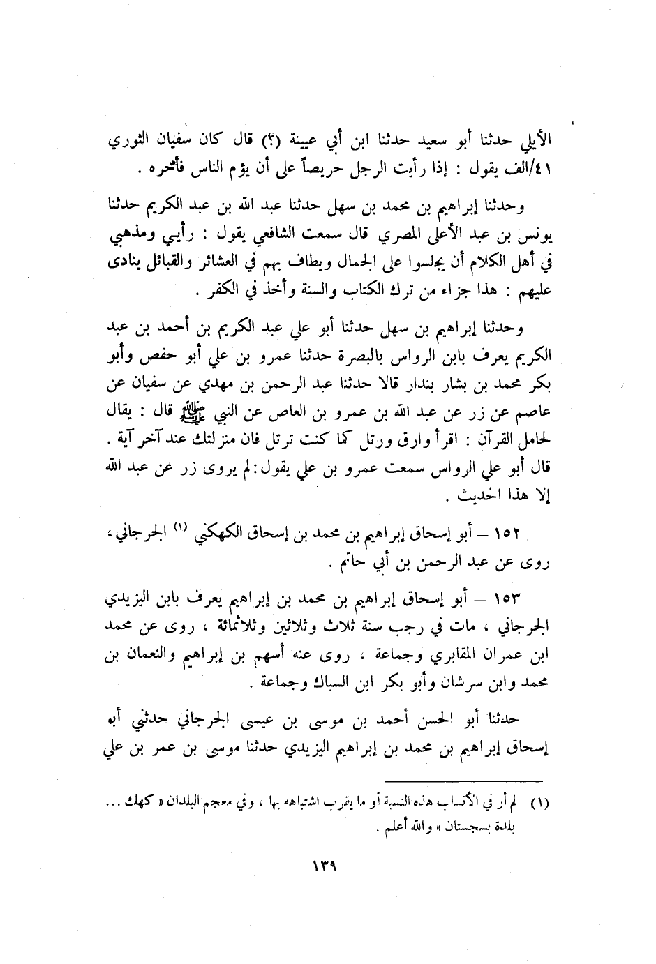 152 - أَبُو إِسْحَاقَ إِبْرَاهِيمُ بْنُ مُحَمَّدِ بْن إسحاق الكهكني1 الْجُرْجَانِيّ روى عَنْ عَبْد الرَّحْمَنِ بْن أَبِي حَاتِم.
