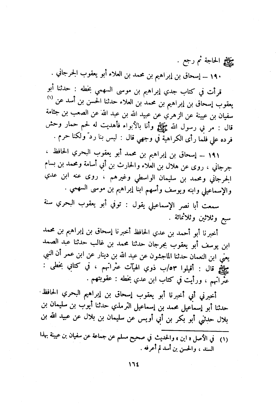 190 - إسحاق بْن إبراهيم بْن مُحَمَّد بْن العلاء أَبُو يعقوب الْجُرْجَانِيّ.