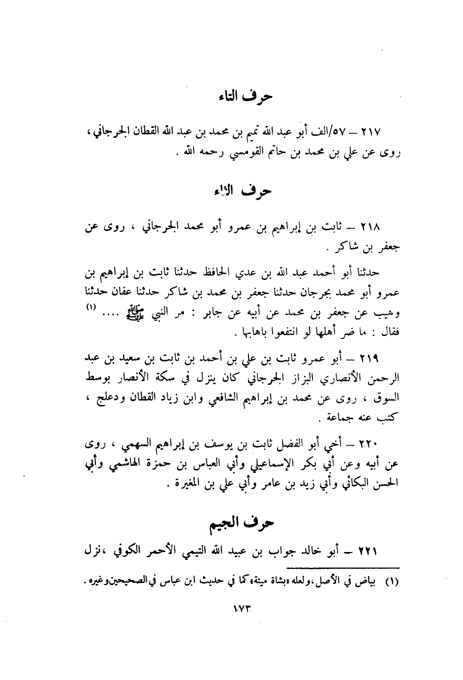 218- ثابت بْن إبراهيم بْن عمرو أَبُو مُحَمَّد الْجُرْجَانِيّ روى عَنْ جعفر بْن شاكر.