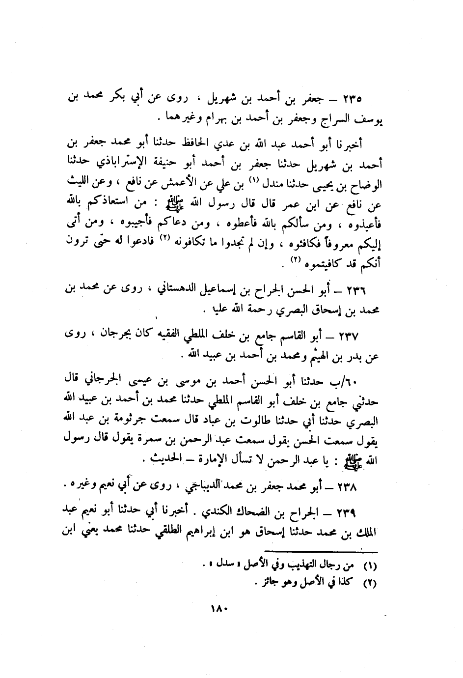 239- الجراح بْن الضحاك الكندي أَخْبَرَنَا أَبِي حَدَّثَنَا أَبُو نُعَيْمٍ عَبْدُ الْمَلِكِ بْنُ مُحَمَّدِ حدثنا إسحاق هو بن إِبْرَاهِيمَ الطَّلْقِيُّ حَدَّثَنَا مُحَمَّدٌ يَعْنِي ابن