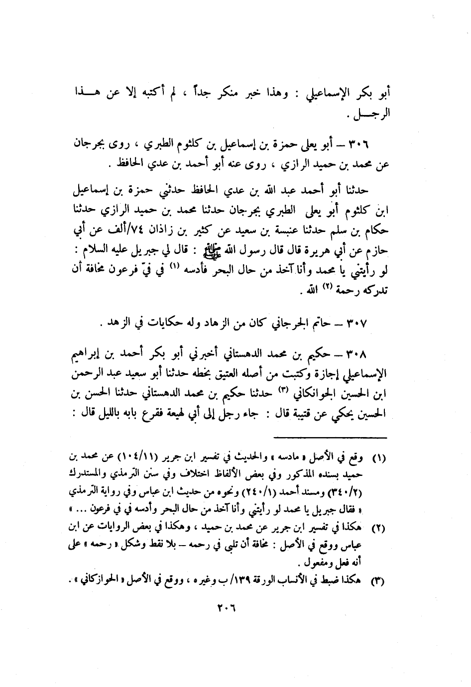 306 - أَبُو يعلى حمزة بْن إسماعيل بْن كلثوم الطبري روى بِجُرْجَانَ عَنْ مُحَمَّد بْن حميد الرَّازِيّ روى عنه أَبُو أَحْمَد بْن عدي الحافظ.