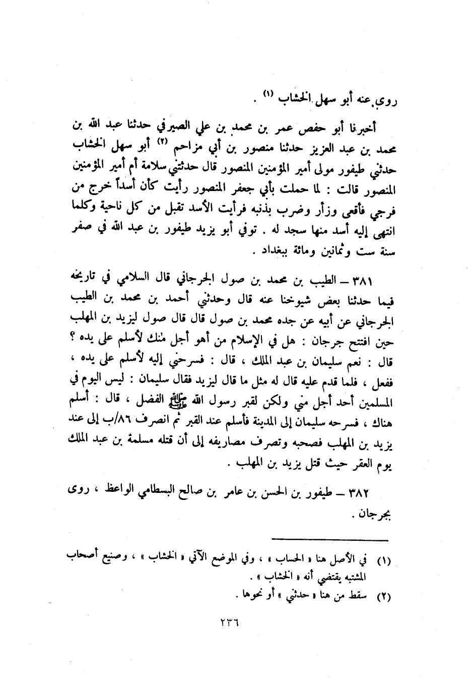 1 في الأصل هنا "الحساب" وفي الموضع الآتي "الخشاب"، وصنيع أصحاب المشتبه يقتضي أنه " الخشاب".