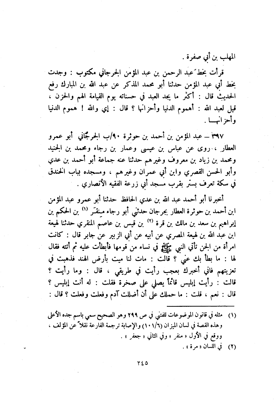 1 مثله في قانون الموضوعات للفتني في ص 299 وهو الصحيح سمي باسم جده الأعلى وهذه القصة في لسان الميزان "6/101" والإصابة ترجمة الفارعة عن المؤلف، ووقع في الأول "منفر" وفي الثاني "جعفر".