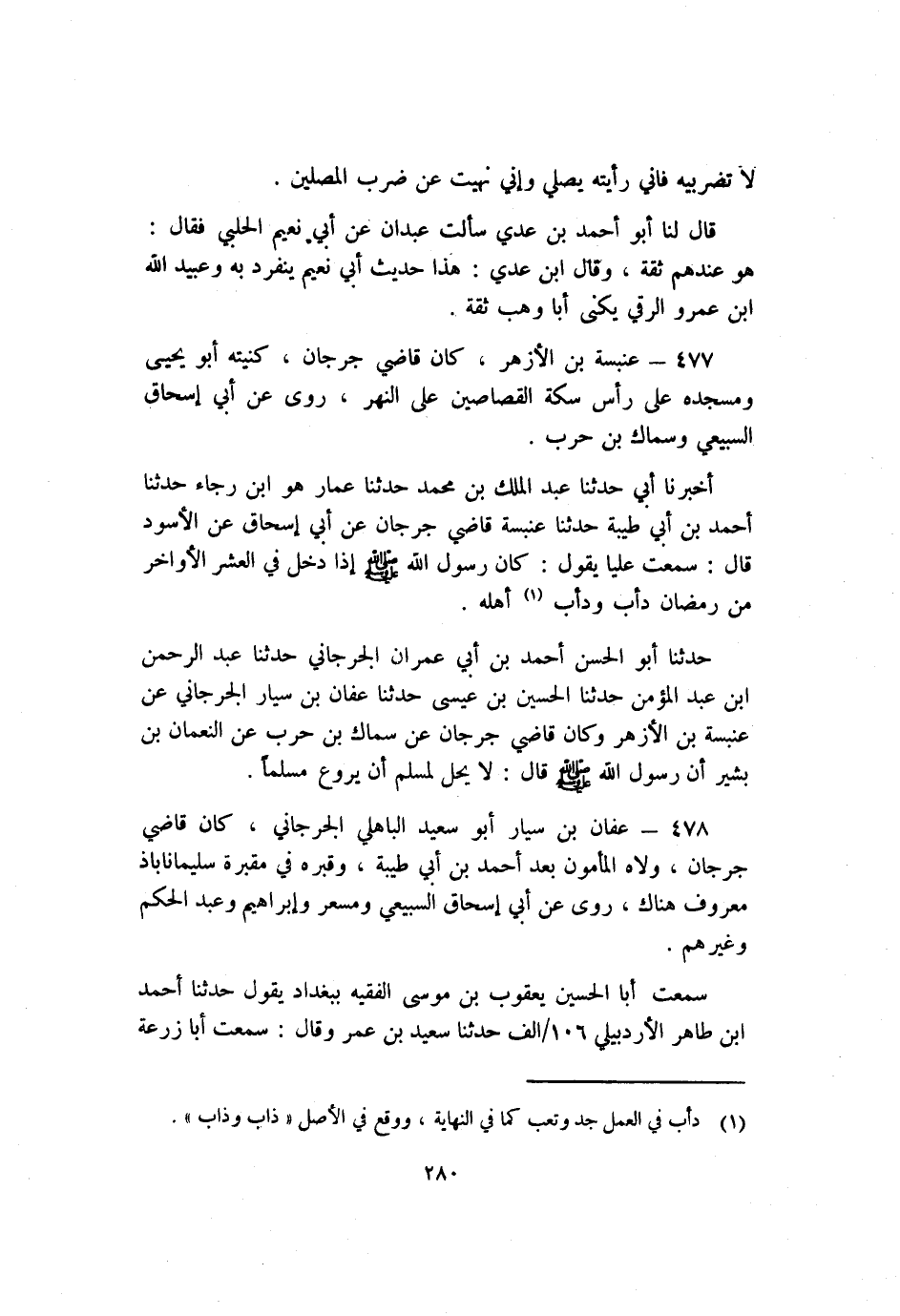 477 - عَنْبَسَة بْن الأزهر كَانَ قَاضِي جُرْجَان كنيته أَبُو يَحْيَى ومسجده عَلَى رأس سكة القصاصين عَلَى النهر رَوَى عَنْ أَبِي إِسْحَاق السبيعي وسماك بْن حرب.