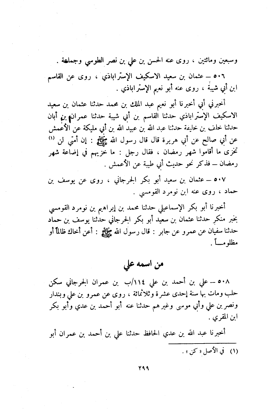 506 - عُثْمَانُ بْنُ سَعِيدِ الاسكيفُ الإِسْتَرَابَاذِي رَوَى عَنِ الْقَاسِم بْن أَبِي شيبة رَوَى عَنْهُ أَبُو نعيم الإِسْتَرَابَاذِي.