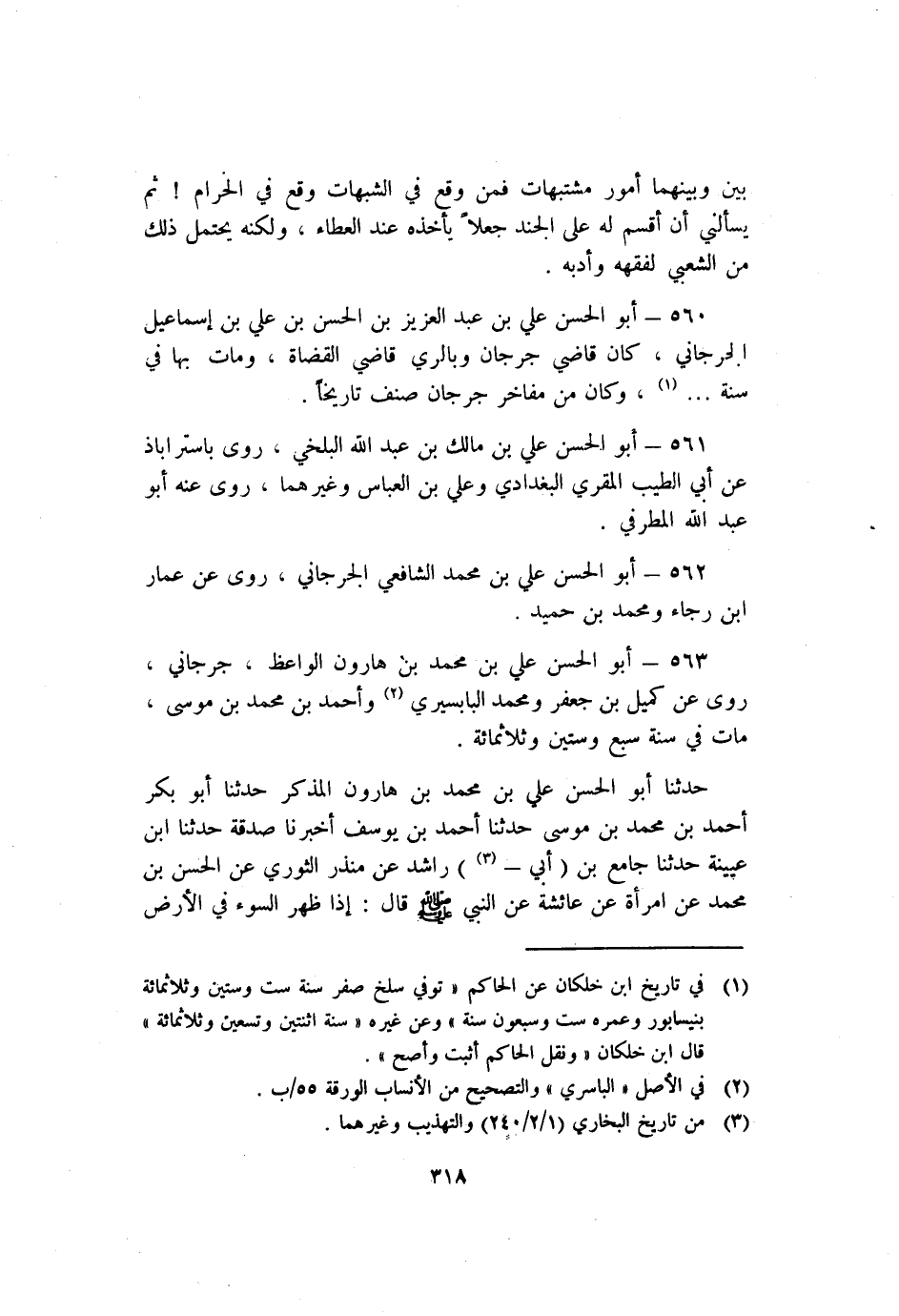 560 - أَبُو الْحَسَن عَلِيّ بْن عَبْد العزيز بْن الْحَسَن بْن عَلِيّ بْن إِسْمَاعِيل الْجُرْجَانِي كَانَ قَاضِي جُرْجَان وبالري قَاضِي القضاة وَمَاتَ بِهَا فِي سَنَة ... 1 وَكَانَ من مفاخر جُرْجَان صنف تاريخا.