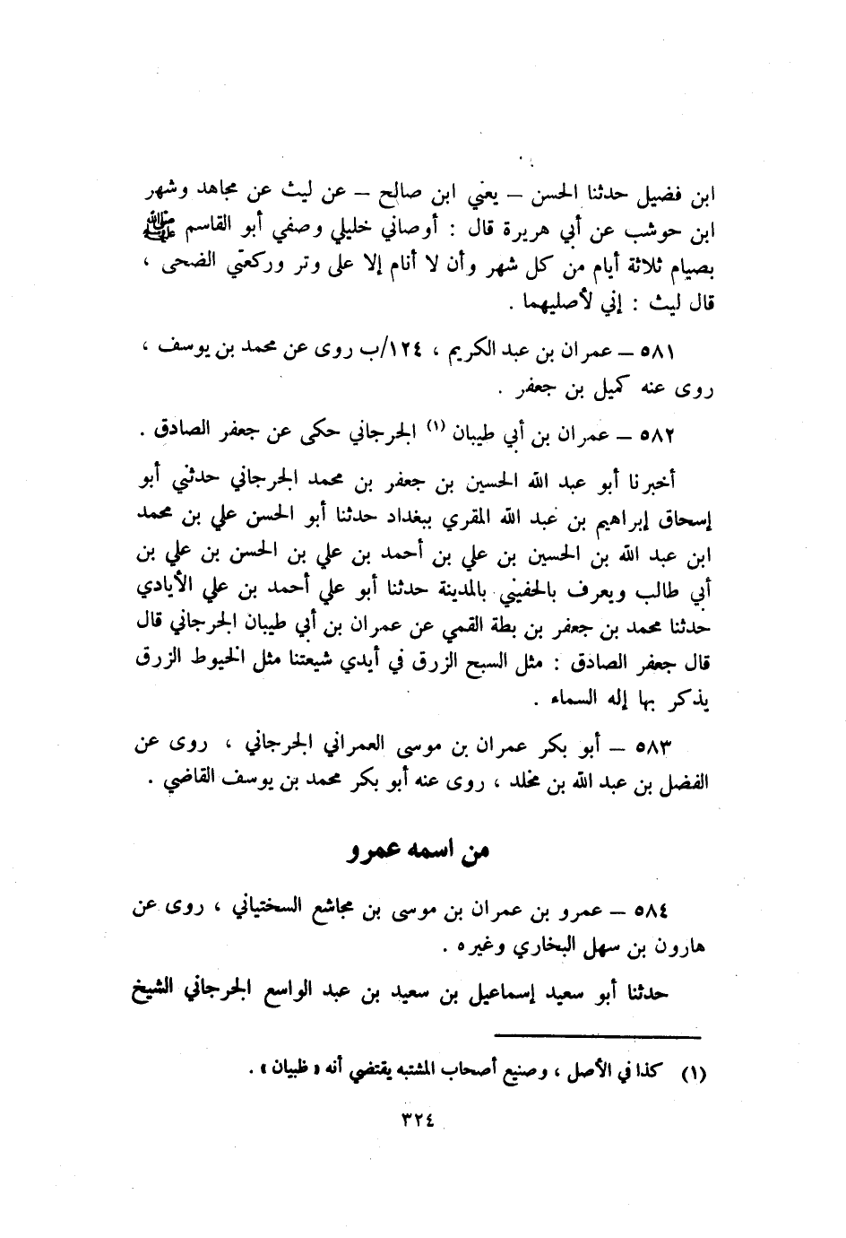582 - عِمْرَان بْن أَبِي طيبان1 الْجُرْجَانِي حكى عَنْ جَعْفَر الصادق.