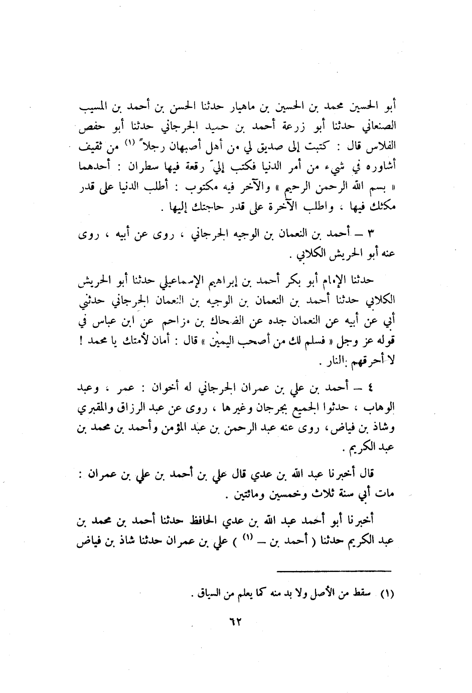 4- أَحْمَد بْن عَلِيّ بْن عمران الْجُرْجَانِيّ له أخوان عُمَر وعبد الوهاب حدثوا الجميع بِجُرْجَانَ وغيرها روى عَنْ عَبْد الرزاق والمقبري وشاذ بْن فياض روى عنه عَبْد الرَّحْمَنِ بْن عَبْد المؤمن وأحمد بْن مُحَمَّد بْن عَبْد الكريم.