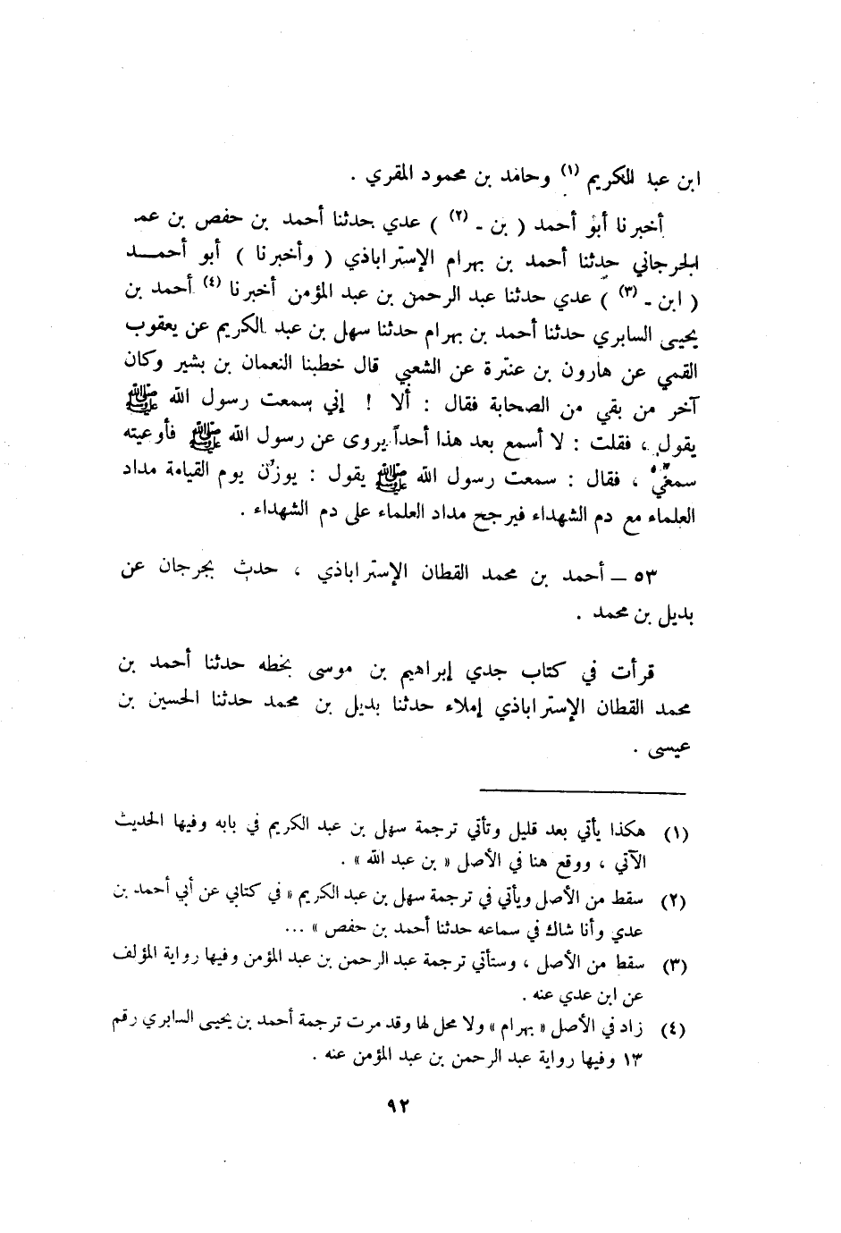 53 - أَحْمَد بْن مُحَمَّد القطان الإستراباذي حدث بِجُرْجَانَ عَنْ بديل بْن مُحَمَّد.