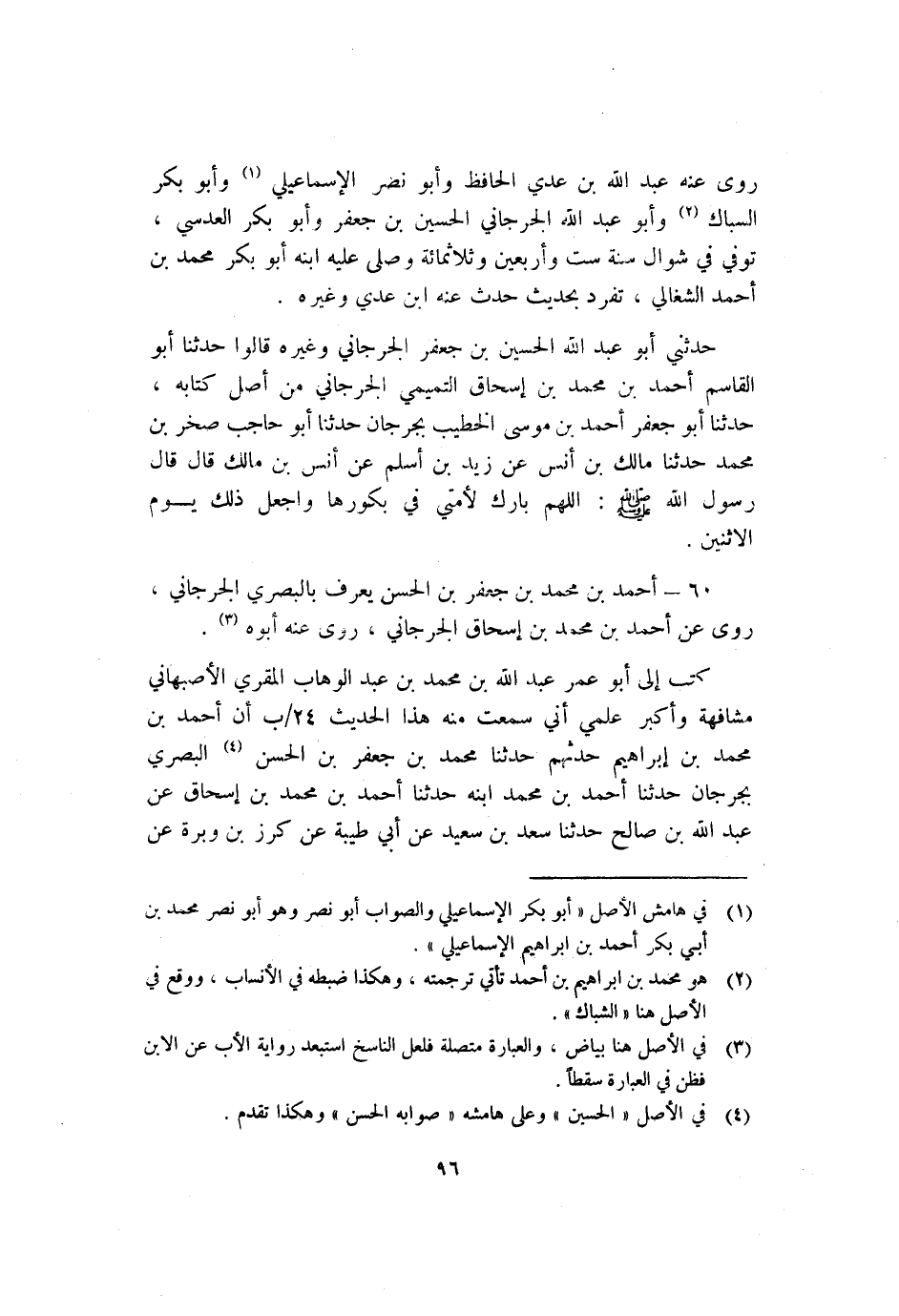 60 - أَحْمَد بْن مُحَمَّد بْن جعفر بْن الْحَسَن يعرف بالبصري الْجُرْجَانِيّ روى عَنْ أَحْمَد بْن مُحَمَّد بْن إسحاق الْجُرْجَانِيّ روى عنه أبوه3.