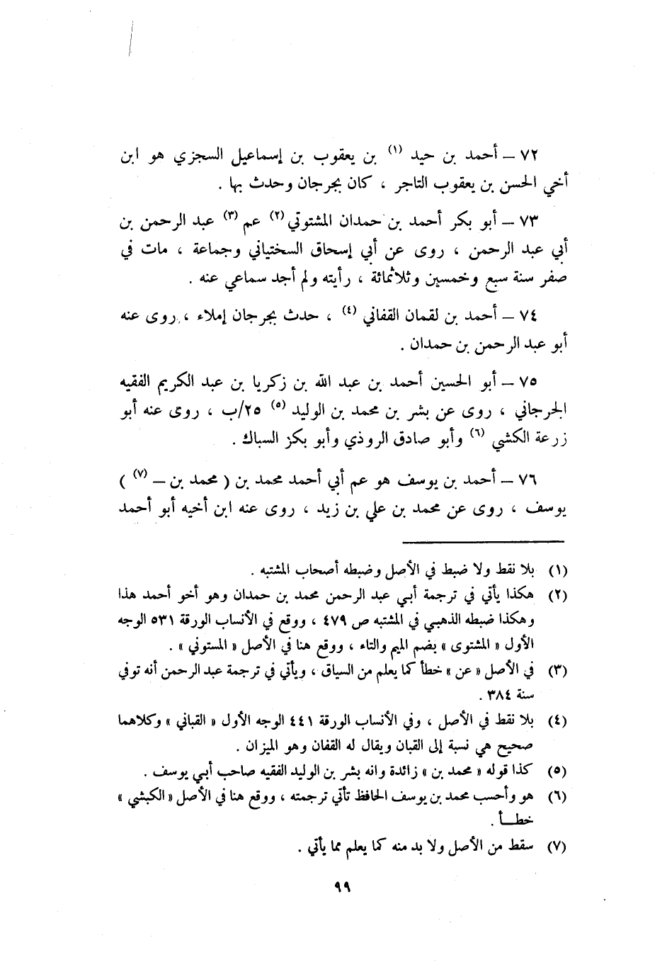 75- أَبُو الْحُسَيْن أَحْمَد بْن عَبْد اللَّهِ بْن زكريا بْن عَبْد الكريم الفقيه الْجُرْجَانِيّ روى عَنْ بشر بن محمد بن الوليد5 25/ب روى عنه أَبُو زرعة الكشي6 وأبو صادق الروذي وأبو بكر السباك.