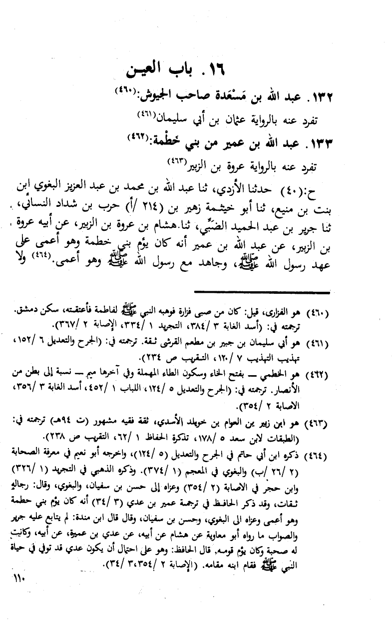 §133 - عَبْدُ اللَّهِ بْنُ عُمَيْرٍ، مِنْ بَنِي خَطْمَةَ: تَفَرَّدَ عَنْهُ بِالرِّوَايَةِ عُرْوَةُ بْنُ الزُّبَيْرِ