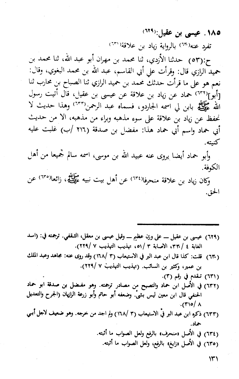 §185 - عِيسَى بْنُ عَقِيلٍ تَفَرَّدَ عَنْهُ بِالرِّوَايَةِ زِيَادُ بْنُ عِلَاقَةَ