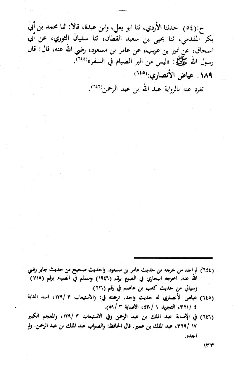 §189 - عِيَاضٌ الْأَنْصَارِيُّ تَفَرَّدَ عَنْهُ بِالرِّوَايَةِ عَبْدُ اللَّهِ بْنُ عَبْدِ الرَّحْمَنِ