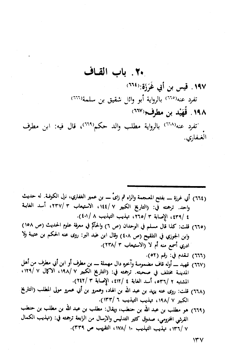 §198 - قُهَيْدُ بْنُ مُطَرِّفٍ تَفَرَّدَ عَنْهُ بِالرِّوَايَةِ مُطَّلِبٌ وَالِدُ حَكَمٍ قَالَ فِيهِ: ابْنَ مُطَرِّفٍ الْغِفَارِيَّ