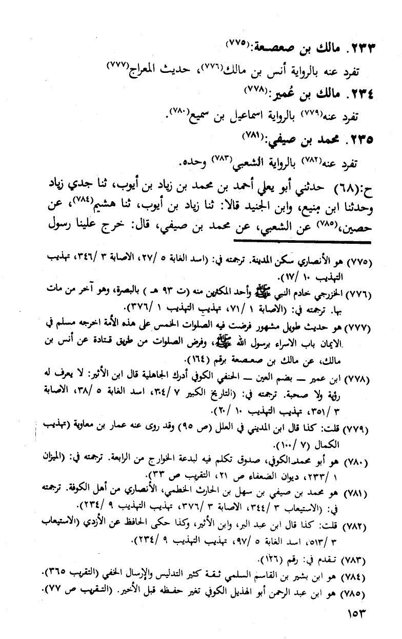 §233 - مَالِكُ بْنُ صَعْصَعَةَ تَفَرَّدَ عَنْهُ بِالرِّوَايَةِ أَنَسُ بْنُ مَالِكٍ، حَدِيثَ الْمِعْرَاجِ