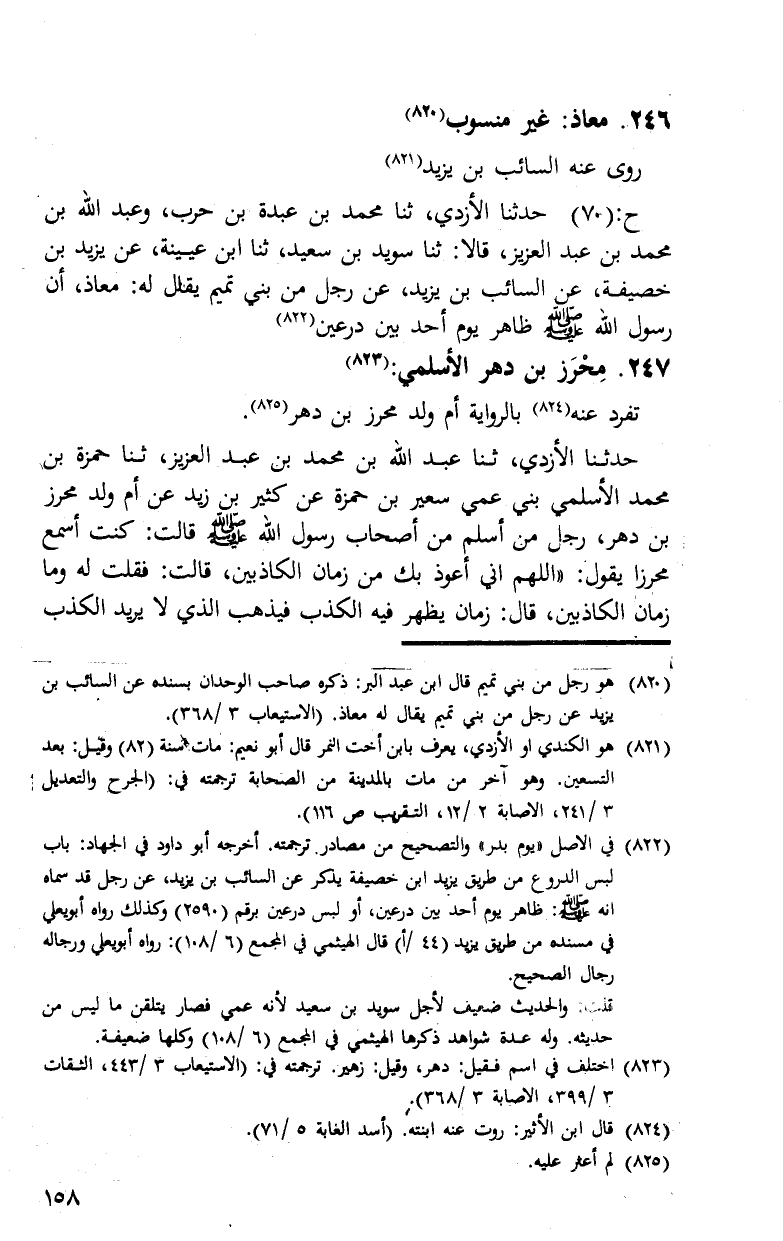 §246 - مُعَاذٌ: غَيْرُ مَنْسُوبٍ. رَوَى عَنْهُ السَّائِبُ بْنُ يَزِيدَ