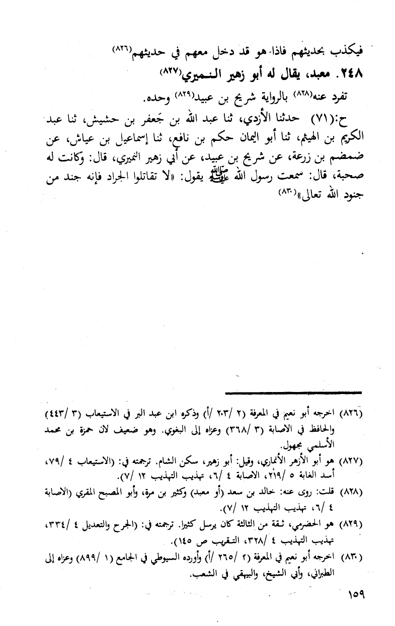 §248 - مَعْبَدٌ يُقَالُ لَهُ أَبُو زُهَيْرٍ النُّمَيْرِيُّ: تَفَرَّدَ عَنْهُ بِالرِّوَايَةِ شُرَيْحُ بْنُ عُبَيْدٍ وَحْدَهُ