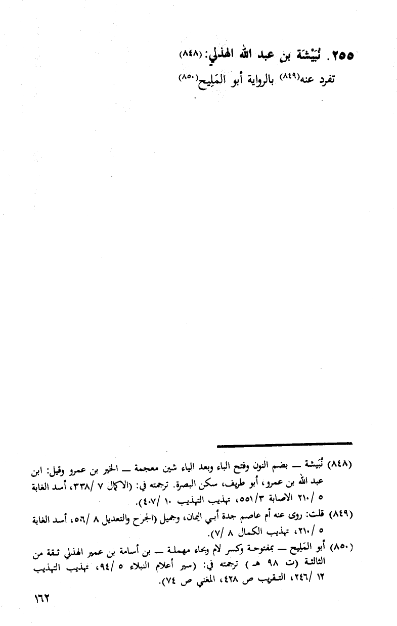§255 - نُبَيْشَةُ بْنُ عَبْدِ اللَّهِ الْهُذَلِيُّ تَفَرَّدَ عَنْهُ بِالرِّوَايَةِ أَبُو الْمَلِيحِ