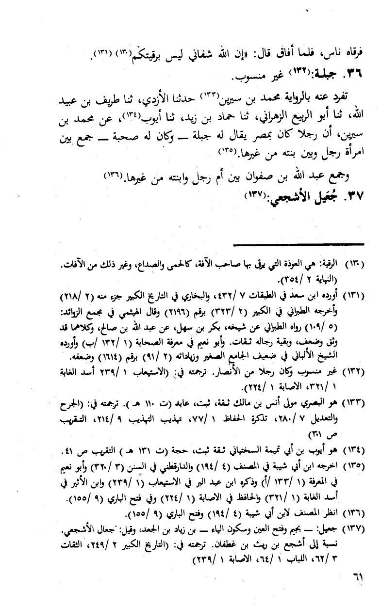 36 - ثنا طَرِيفُ بْنُ عُبَيْدِ اللَّهِ، ثنا أَبُو الرَّبِيعِ الزَّهْرَانِيُّ، ثنا حَمَّادُ بْنُ زَيْدٍ، ثنا أَيُّوبُ، عَنْ مُحَمَّدِ بْنِ سِيرِينَ " أَنَّ رَجُلًا كَانَ بِمِصْرَ يُقَالُ لَهُ: جَبَلَةُ، وَكَانَ لَهُ صُحْبَةٌ، §جَمَعَ بَيْنَ امْرَأَةِ رَجُلٍ وَبَيْنَ بِنْتِهِ مِنْ غَيْرِهَا , وَجَمَعَ عَبْدُ اللَّهِ بْنُ صَفْوَانَ بَيْنَ أُمِّ رَجُلٍ وَابْنَتِهِ مِنْ غَيْرِهَا "