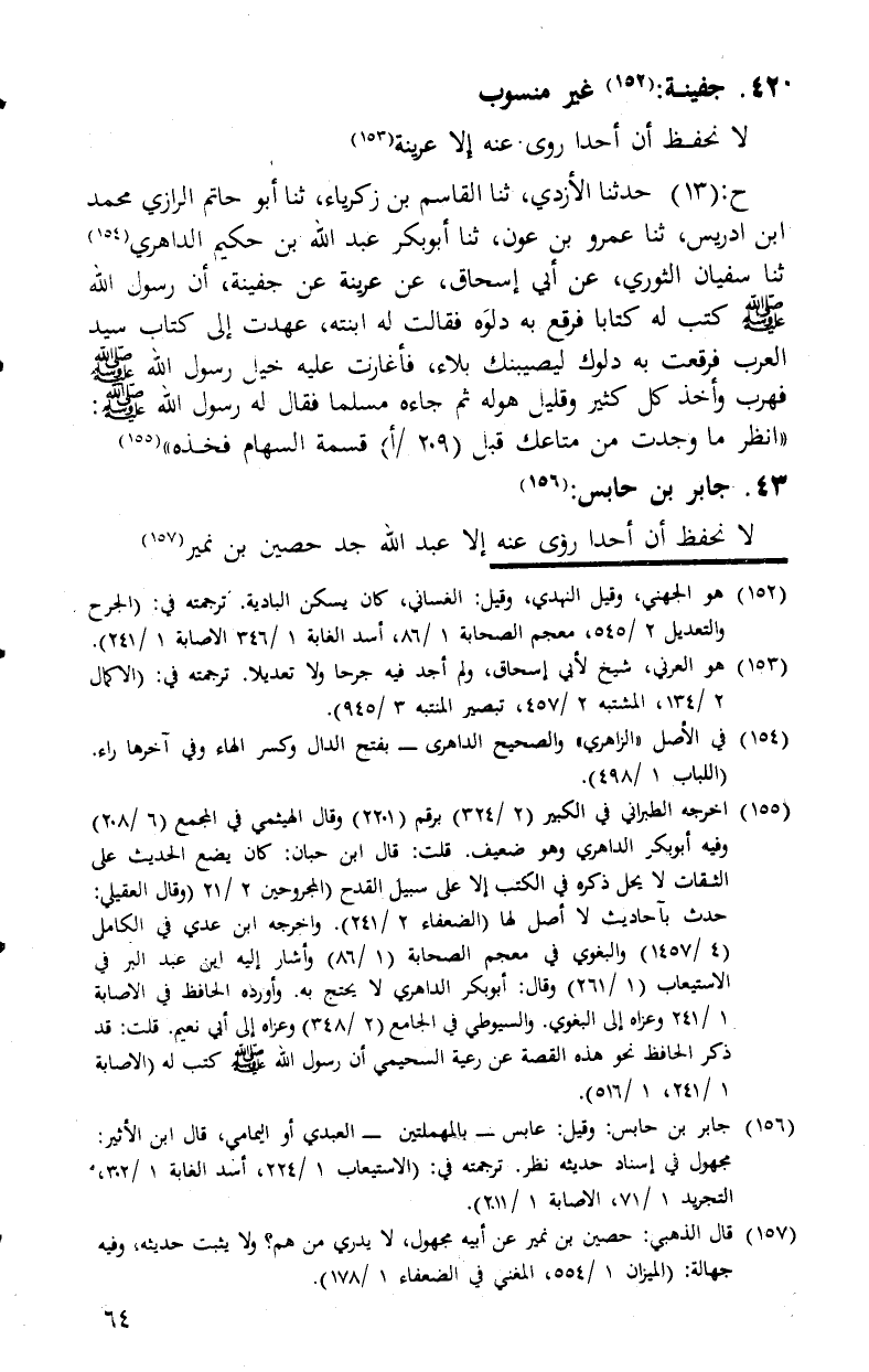 §43 - جَابِرُ بْنُ حَابِسٍ لَا نَحْفَظُ أَنَّ أَحَدًا رَوَى عَنْهُ، إِلَّا عَبْدُ اللَّهِ جَدُّ حُصَيْنِ بْنِ نُمَيْرٍ