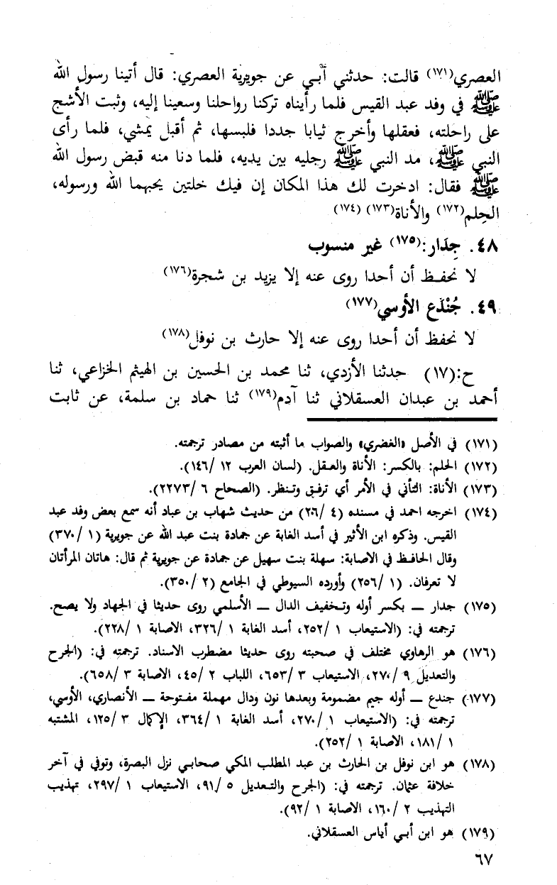 §49 - جُنْدَعٌ الْأَوْسِيُّ لَا نَحْفَظُ أَنَّ أَحَدًا رَوَى عَنْهُ إِلَّا حَارِثُ بْنُ نَوْفَلٍ