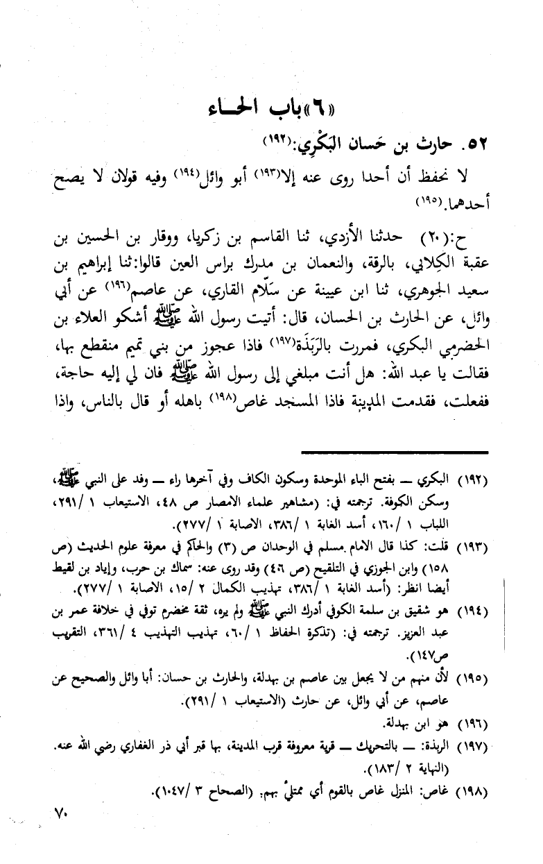 §52 - حَارِثُ بْنُ حَسَّانَ الْبَكْرِيُّ لَا نَحْفَظُ أَنَّ أَحَدًا رَوَى عَنْهُ، إِلَّا أَبُو وَائِلٍ، وَفِيهِ قَوْلَانِ، لَا يَصِحُّ أَحَدُهُمَا