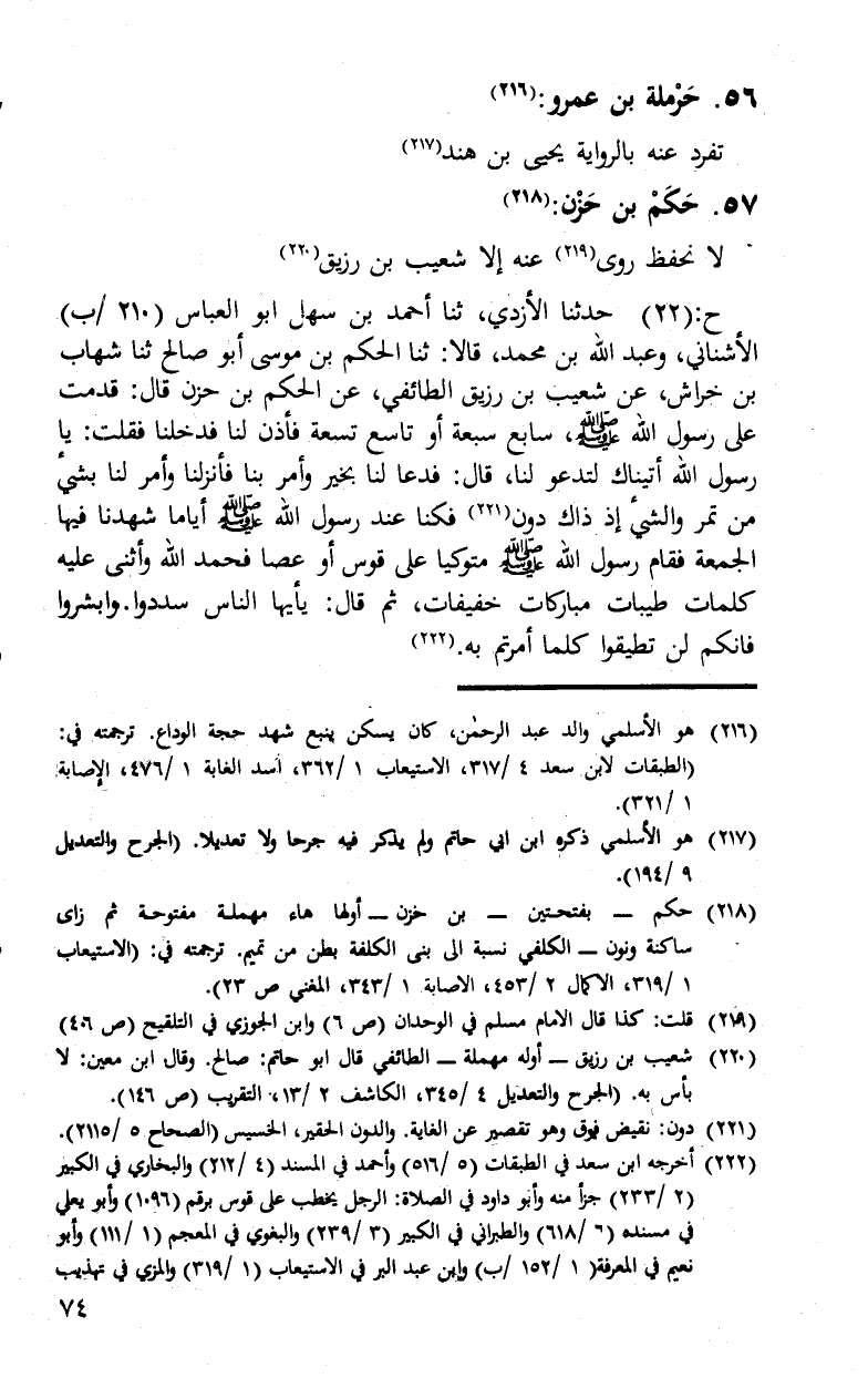 §57 - حَكَمُ بْنُ حَزْنٍ لَا نَحْفَظُ رَوَى عَنْهُ، إِلَّا شُعَيْبُ بْنُ زُرَيْقٍ