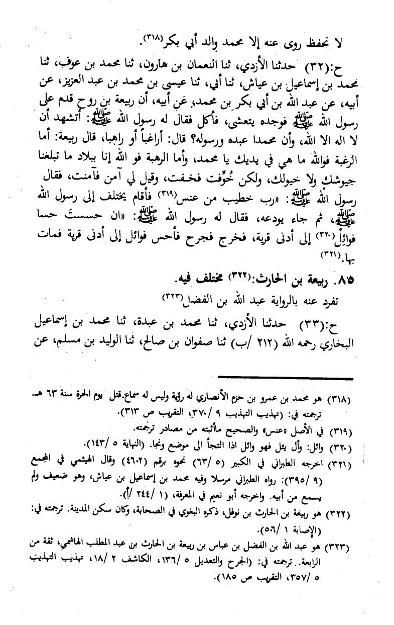 §85 - رَبِيعَةُ بْنُ الْحَارِثِ مُخْتَلَفٌ فِيهِ. تَفَرَّدَ عَنْهُ بِالرِّوَايَةِ عَبْدُ اللَّهِ بْنُ الْفَضْلِ